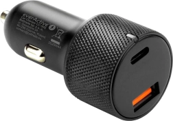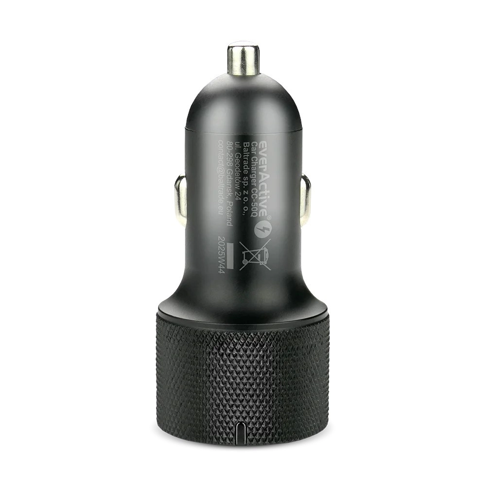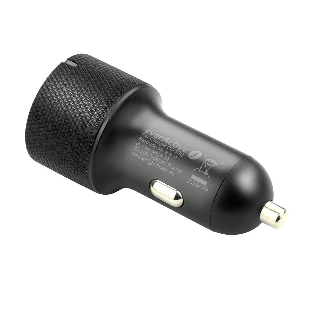 Den stilfulde og robuste EVERACTIVE-oplader er det ideelle valg til enhver bil. Den understøtter moderne hurtigopladningsstandarder USB‑C PD og QC 3.0, så du kan regne med maksimal hastighed og sikkerhed under opladning. Det teksturerede hus gør håndteringen nem, og den kompakte konstruktion stikker ikke ud af stikket.
