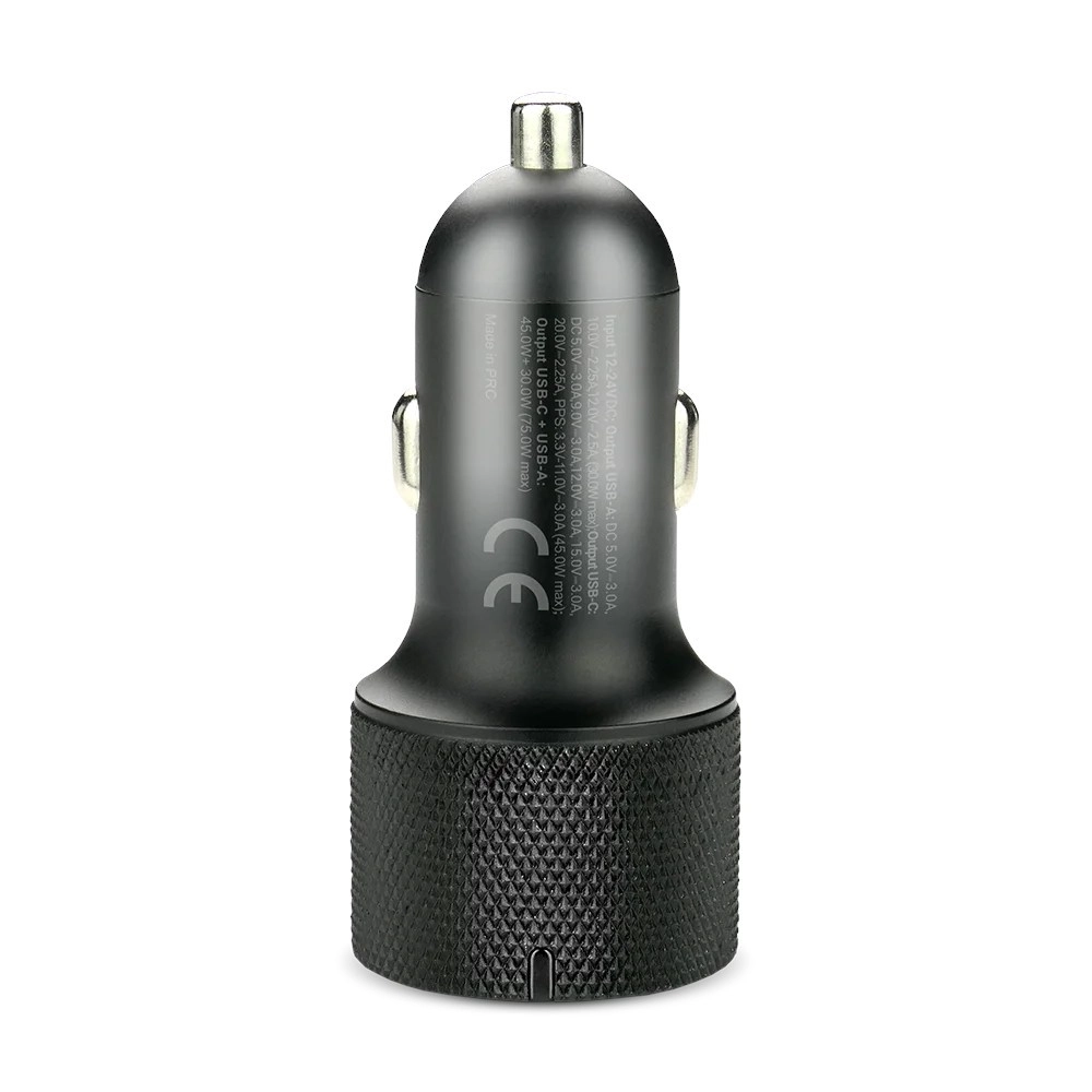 Tekstureret hus for sikkert greb, metalkontakt og kompakte mål for nem brug i enhver bil (12/24 V).