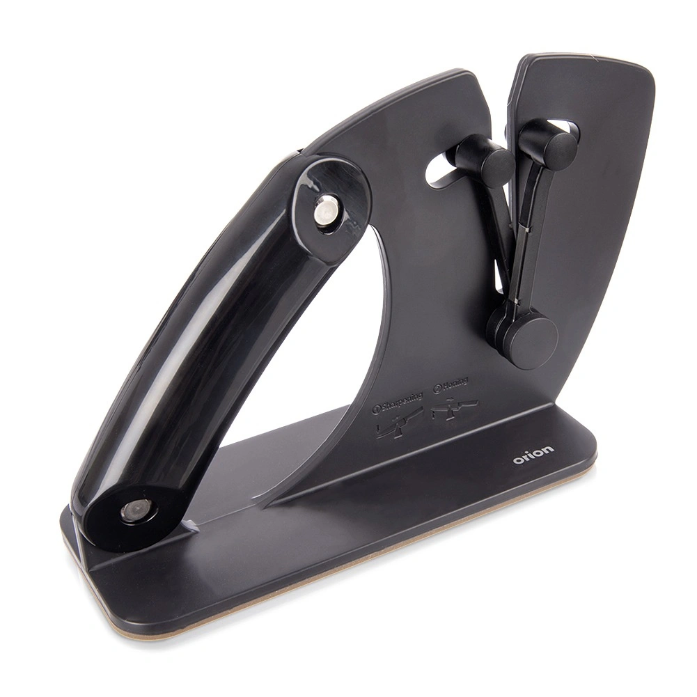To tilstande giver fuld kontrol: grundslibning til hurtig genopretning af skarphed og fin efterslibning/honing til at udjævne æggen. Den skridsikre silikonebase og det store ergonomiske greb sikrer maksimal stabilitet og sikkerhed. De holdbare karbid-slibeelementer garanterer lang levetid og ensartede resultater.