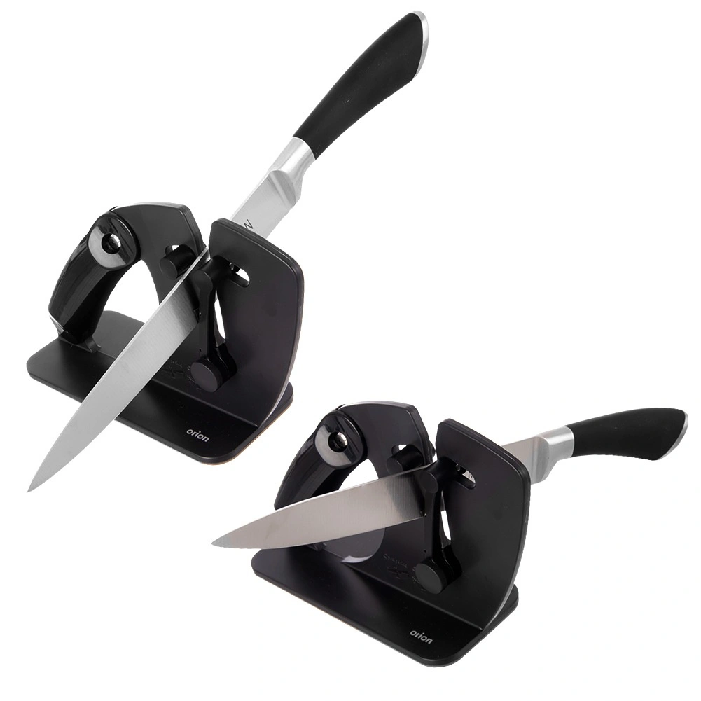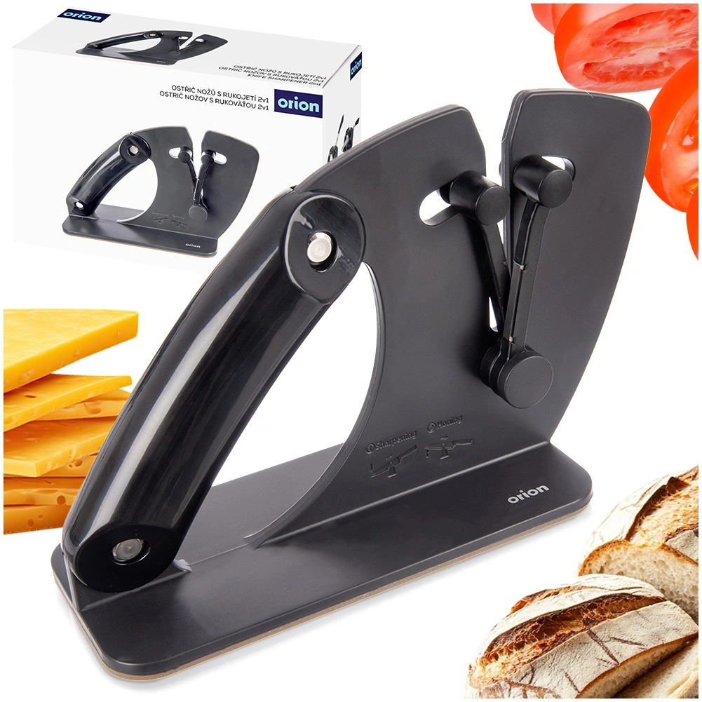 Manuel knivsliber 2-i-1 med automatisk slibevinkel sikrer hurtig, sikker og jævn slibning af både glatte og takkede blade. Takket være automatisk tilpasning af vinklen 22°–46°, en stabil skridsikker base og to slibetilstande genskaber du nemt skarpheden på køkkenknive derhjemme og i gastronomien.