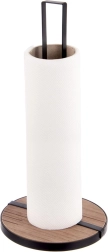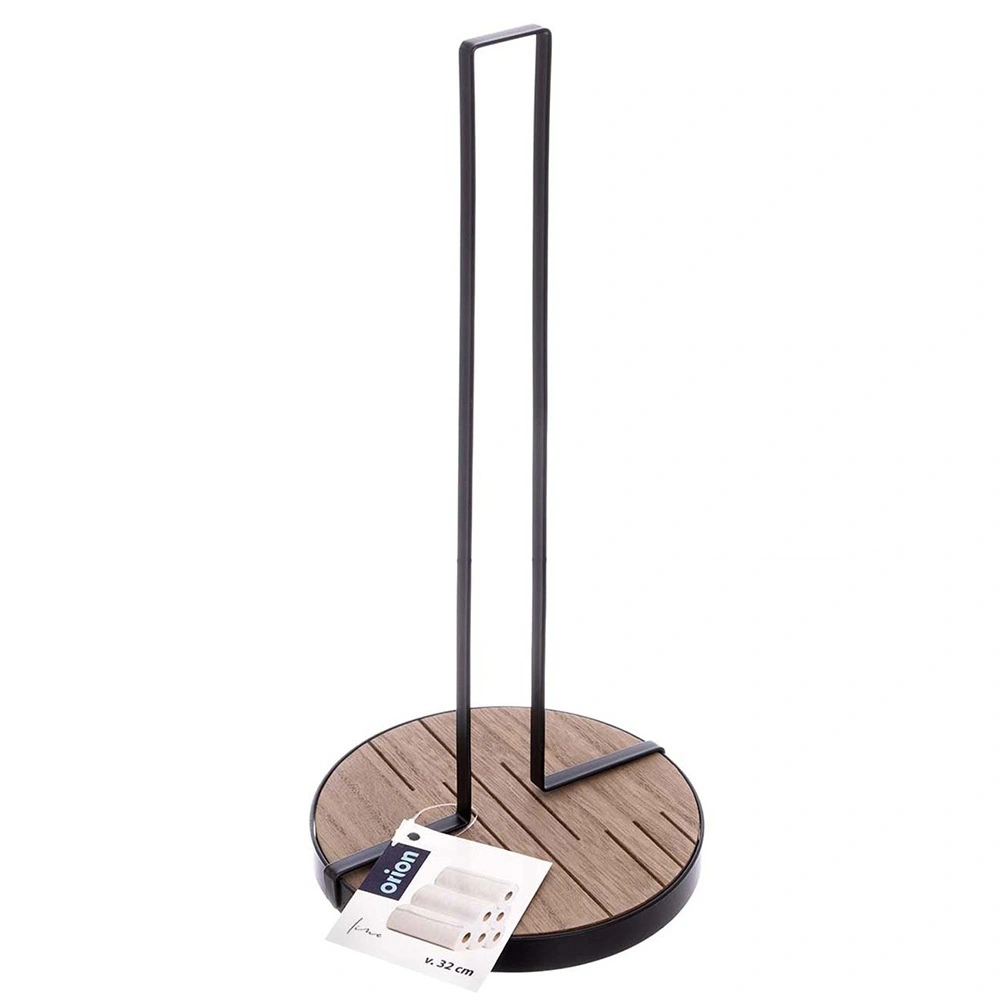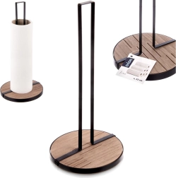 Elegant holder til køkkenrulle i industrielt LOFT-look, der kombinerer sort metal og en træbase af MDF. Den tilbyder stabil konstruktion, nem afrivning med én hånd og universel størrelse til forskellige rulledimensioner. Passer perfekt i både moderne og klassiske køkkener og hjælper med at holde orden på køkkenbordet.