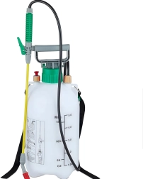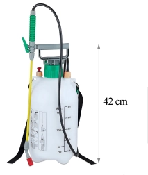 Universal tryksprøjte med en kapacitet på 5 liter til have og husholdning. Den tilbyder en justerbar dyse, ergonomisk pistolgreb og en behagelig skulderrem for nem håndtering. Takket være holdbar plast og en manuel pumpe er den ideel til plantesprøjtning, rengøring og vanding.