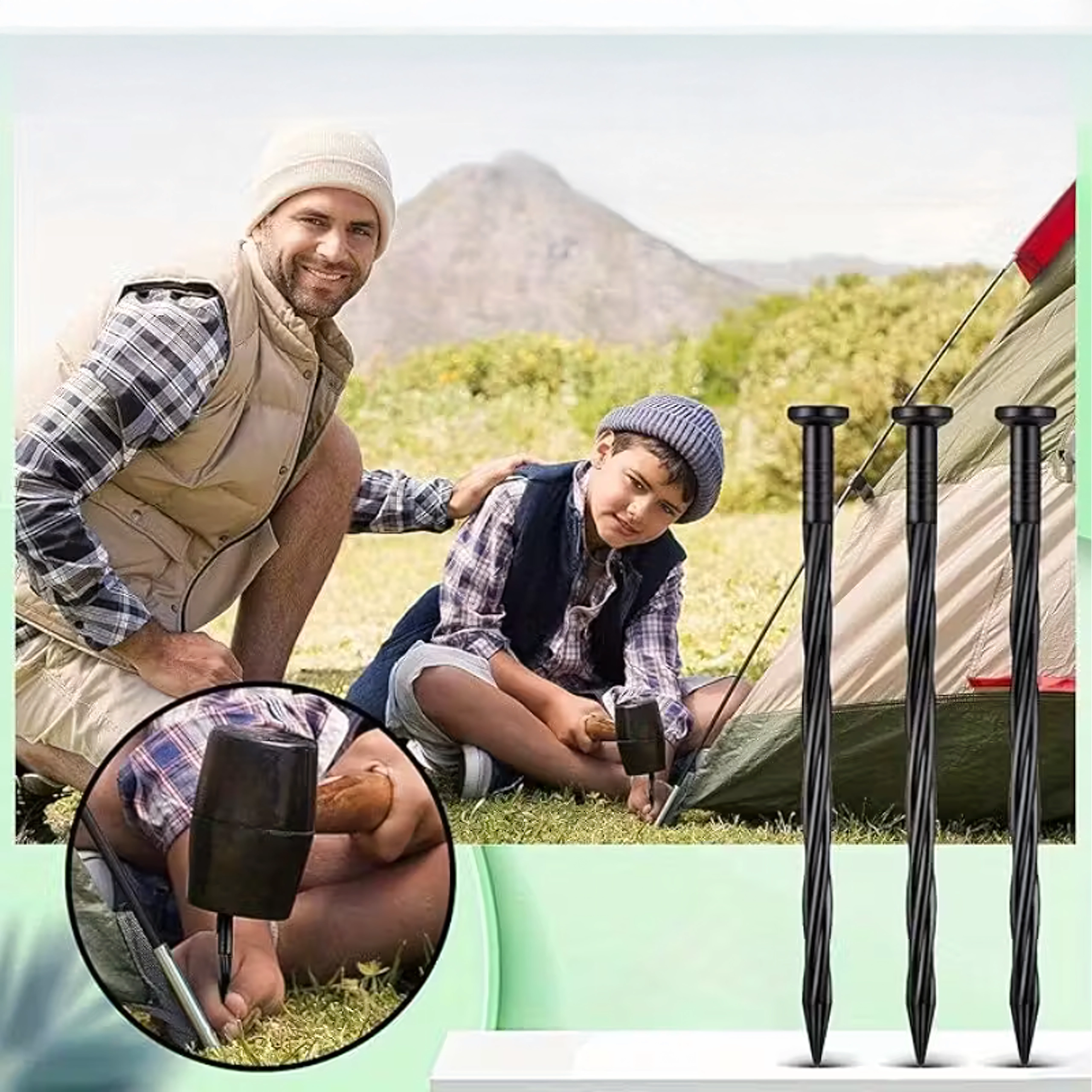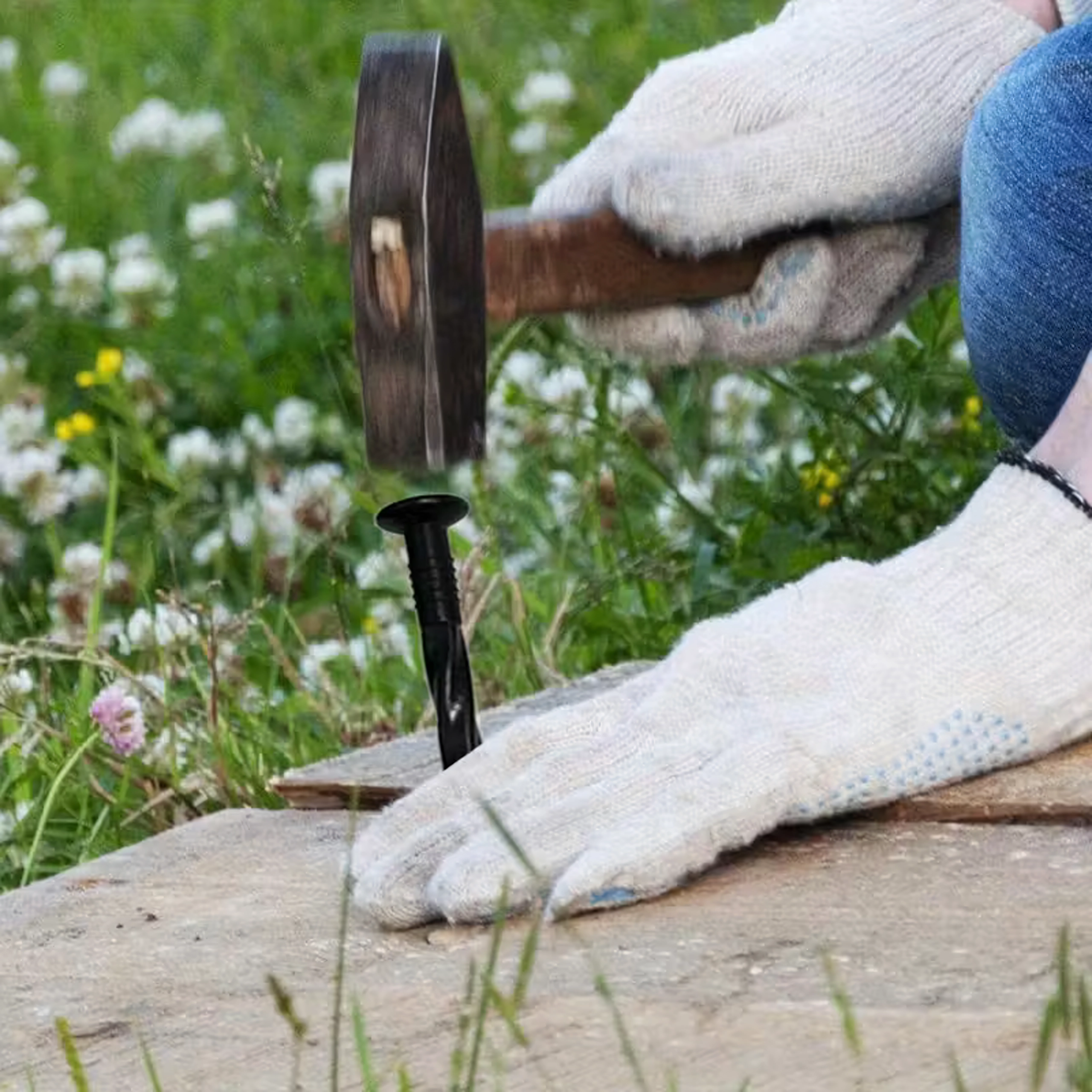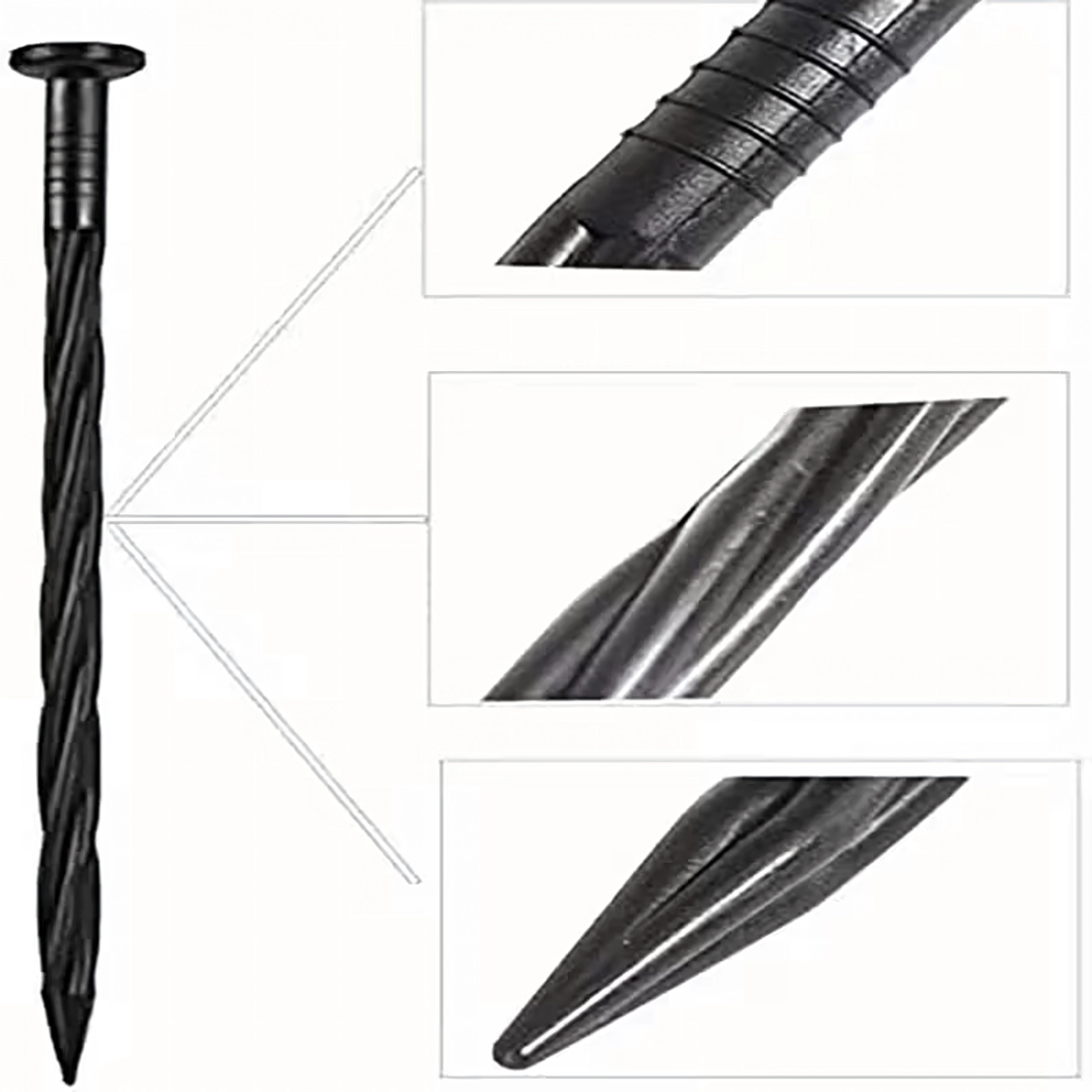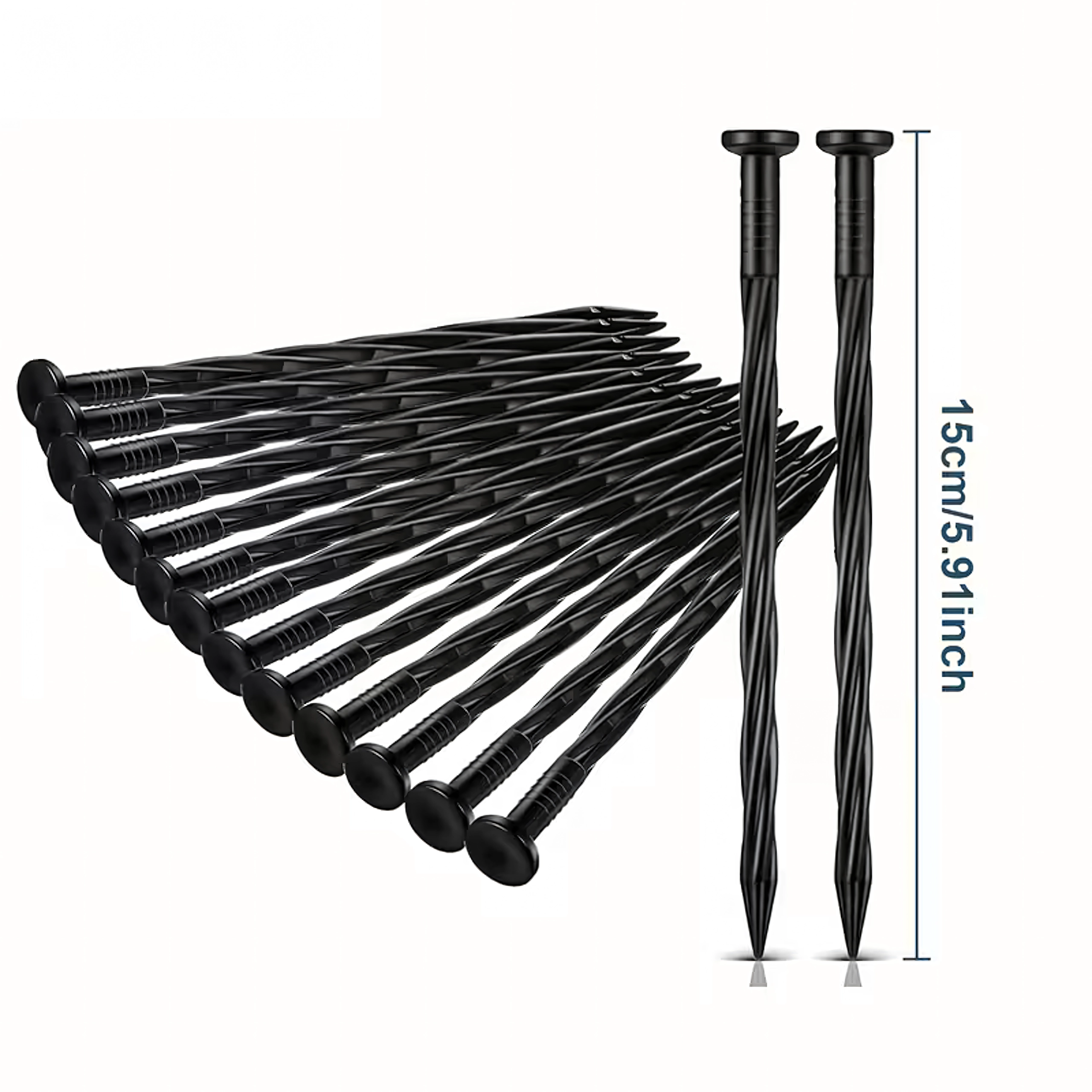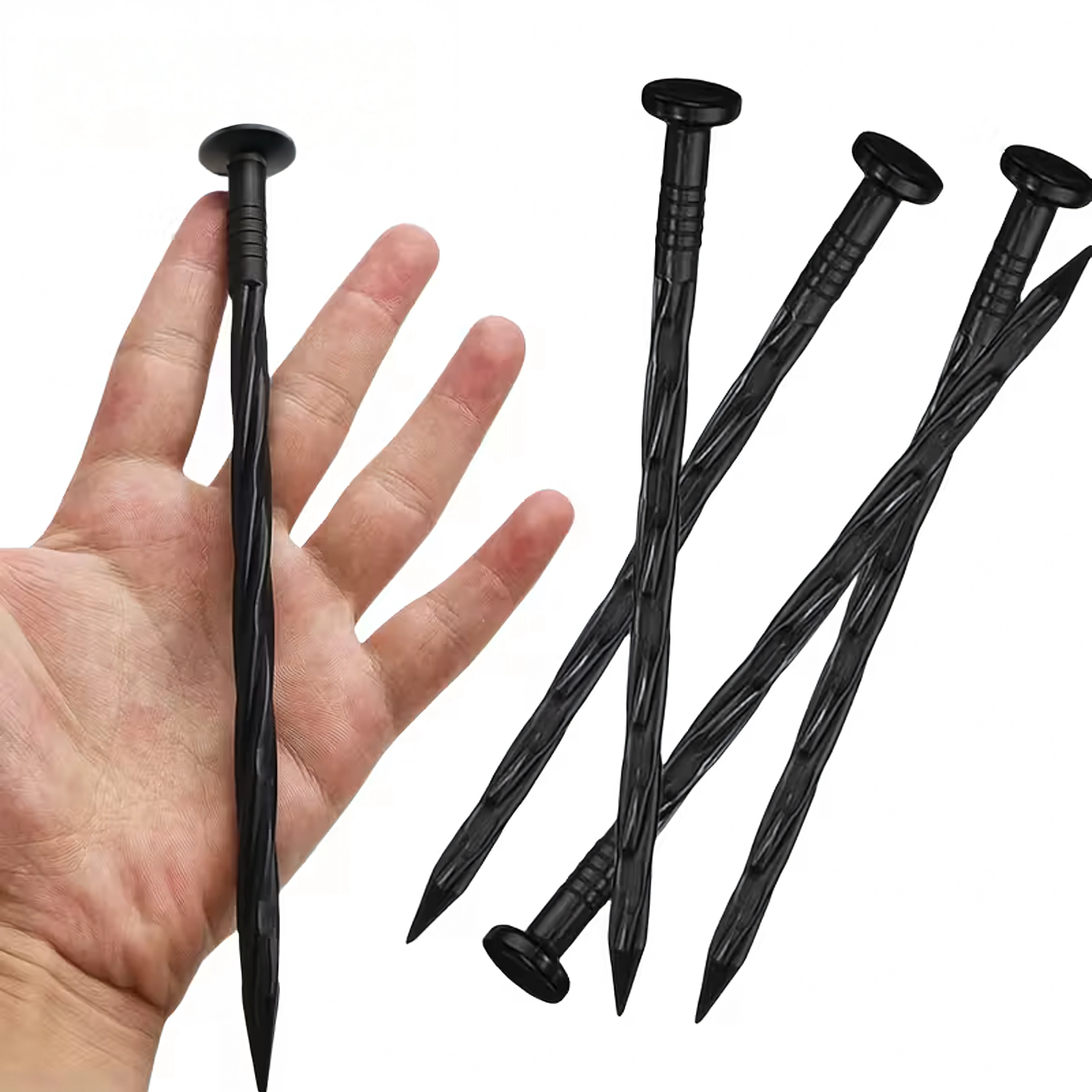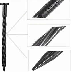 Det tvistede skaft og den skarpe spids borer sig ned i jorden og holder kanter og tekstiler på plads uden at flytte sig.