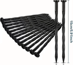 Universelle pløkker på 15 cm er ideelle til havearbejde og camping. Takket være det holdbare plast og formen slås de nemt i og sidder fast i jord, grus og barkflis. Perfekte til fastgørelse af kantlister, agrotextiler, nonwoven-tekstiler og græsplænegitre.