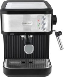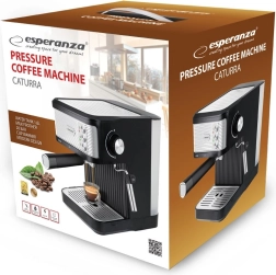 Stilfuld stempel-kaffemaskine Esperanza CATURRA med 20 bar tryk, 1,8 l vandtank og dampspids til luftig mælkeskum. Byder på hurtig tilberedning af espresso, kopvarmer og nem rengøring takket være den aftagelige drypbakke.