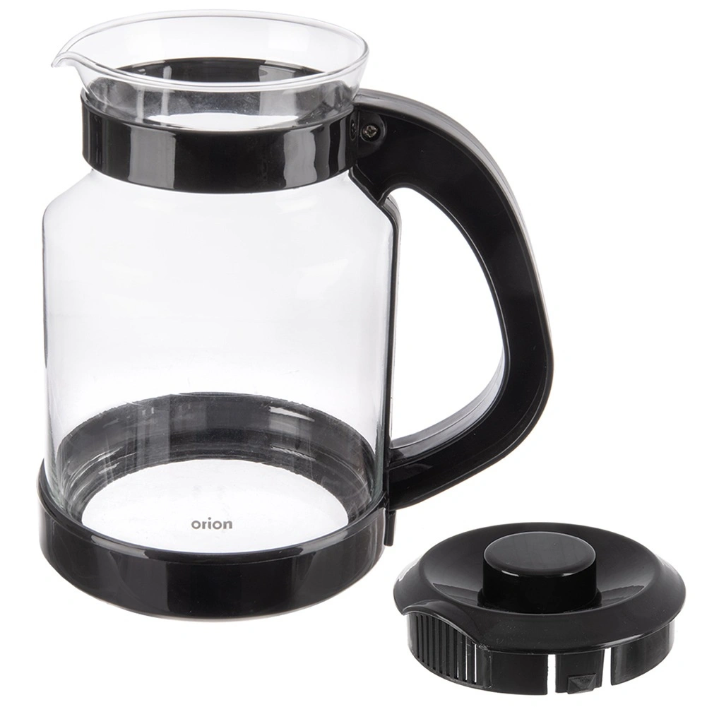 Glaskanden ORION på 2,25 l er ideel til tilberedning af varme drikke som te, kaffe og urtete samt til servering af kolde drikke, juice og vand. Den transparente krop gør det nemt at kontrollere mængde og styrke, mens låget beskytter indholdet mod støv og hjælper med at holde på varmen.