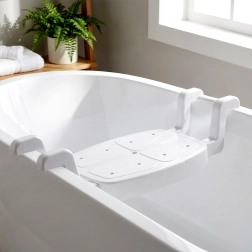 Den ergonomisk formede siddeflade på 35,5 × 27,5 cm med perforering for vandafløb minimerer risikoen for at glide og gør hygiejnen lettere. Monteringen er hurtig og værktøjsfri – sædet hviler sikkert på badekarets kanter og giver tryghed ved forflytning og under selve badet.