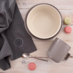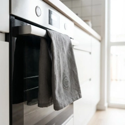 Oplev pålidelige køkkenhåndklæder, der klarer hverdagens køkkenrutiner. Takket være 100% bomuld suger de hurtigt fugt, er lette at vedligeholde, og den grå nuance passer til både moderne og klassiske interiører. Håndklæderne prydes af en diskret “My Kitchen”-label og praktisk kantning for længere holdbarhed.