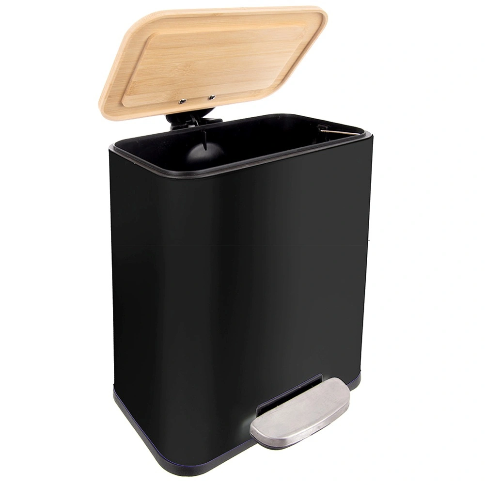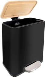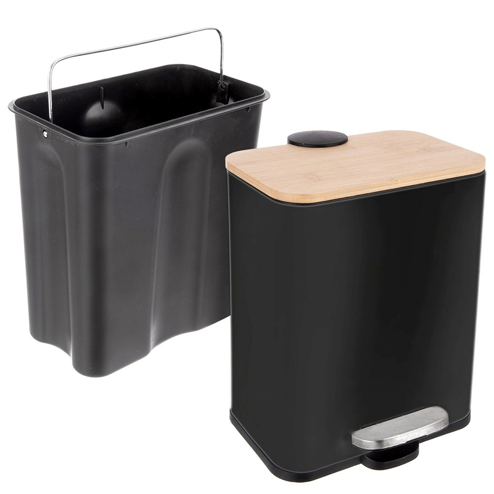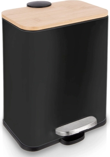 Denne smalle pedalspand kombinerer moderne design og funktionalitet. Det sorte stålkabinet med bambuslåg passer ind i mange indretninger, mens pedalen muliggør berøringsfri og hygiejnisk åbning. Kapaciteten på 5 l er ideel til badeværelser, mindre køkkener eller kontorer.
