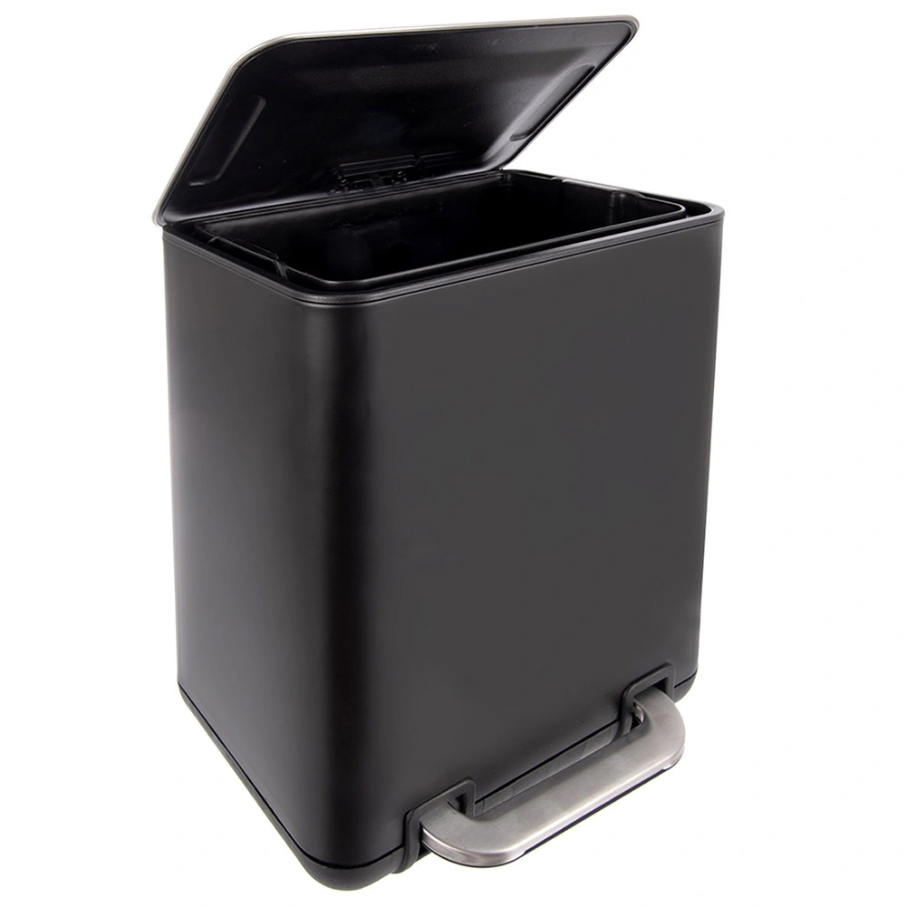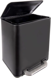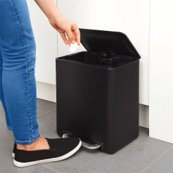 Denne affaldsspand kombinerer moderne udseende med høj funktionalitet. Det mat sorte korpus i rustfrit stål er modstandsdygtigt over for daglig brug, mens den solide pedal giver en komfortabel og hygiejnisk åbning af låget uden brug af hænder.