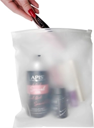 Matte lynlåsposer tilbyder alsidig brug til kosmetik, små elektronikdele, fodtøj, rejsetilbehør og dokumenter. Det halvgennemsigtige materiale sikrer privatliv og gør det samtidigt nemt hurtigt at orientere sig i indholdet. Den pålidelige lynlåslukning beskytter mod spild, fugt og snavs.