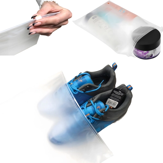 Perfekt til at organisere toiletartikler, fodtøj eller småting i kufferten. De genlukkelige poser holder alt rent og på sin plads.