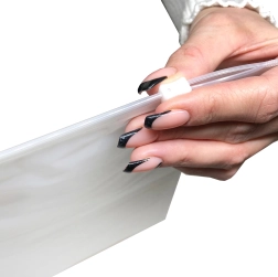 Matte lynlåsposer 350 × 450 mm er en alsidig løsning til opbevaring af kosmetik, toiletartikler, dokumenter, fodtøj eller småelektronik. Det semitransparente, frostmatte materiale giver et diskret udseende og muliggør samtidig hurtig visuel kontrol af indholdet. Den robuste zip-lock giver en tæt lukning, som beskytter mod fugt, støv og lugtudslip.