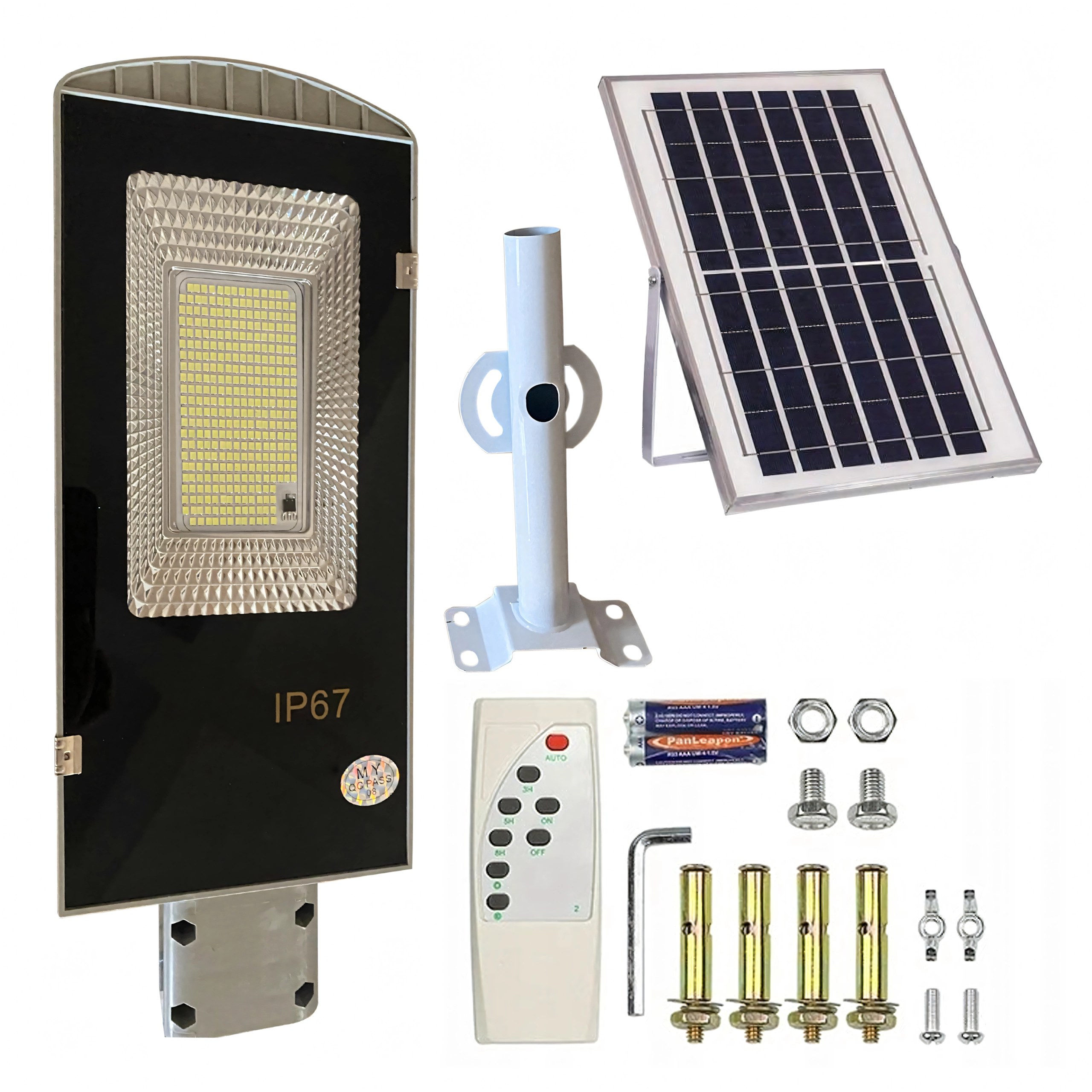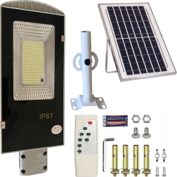 Denne solcellelampe til stolpe er et fremragende valg til udendørs belysning, hvor du vil sætte pris på vedligeholdelsesfri drift, energioptimering og pålidelig ydeevne. Det integrerede solpanel oplader batteriet i løbet af dagen og tænder automatisk 299 LED-dioder med høj lysstyrke efter mørkets frembrud.