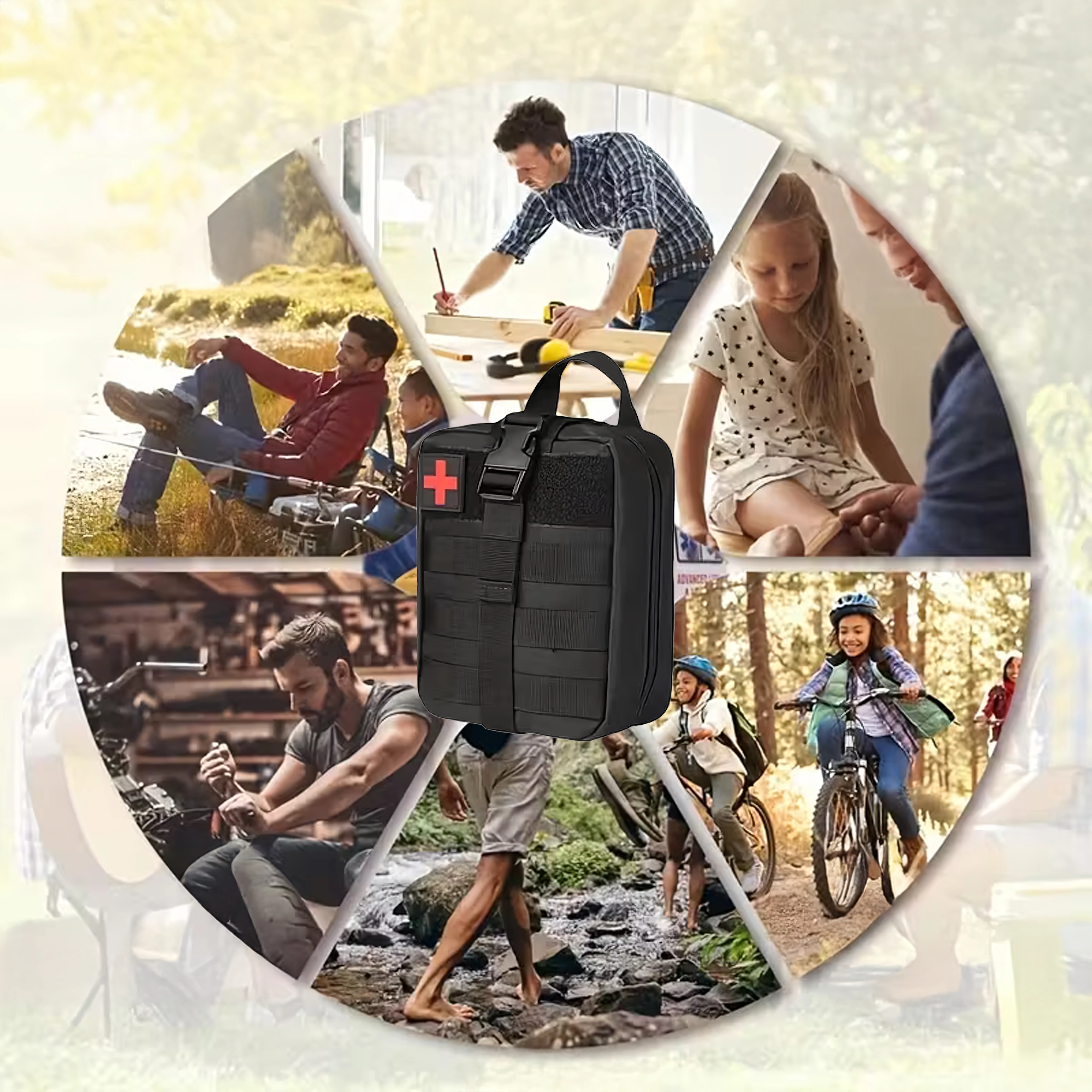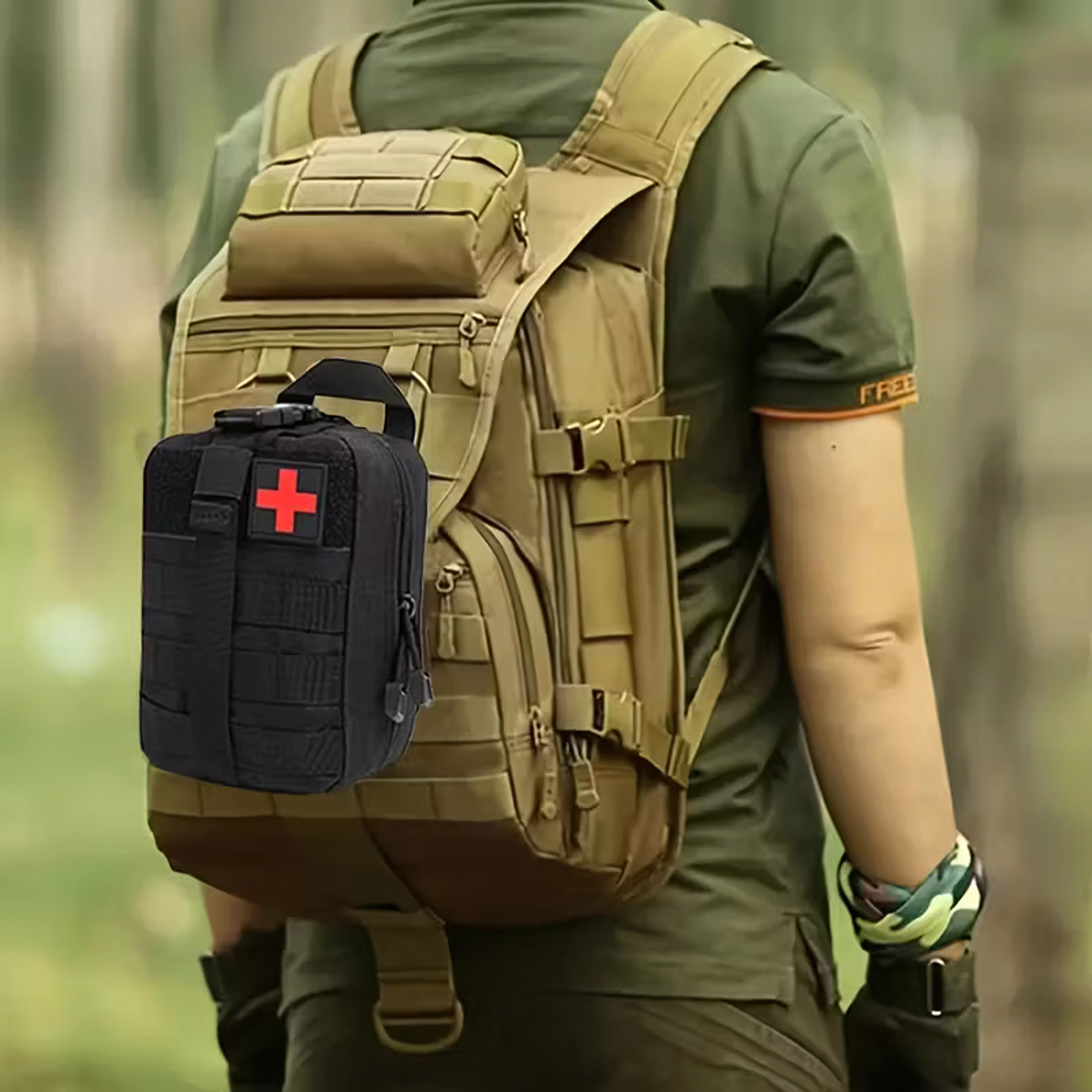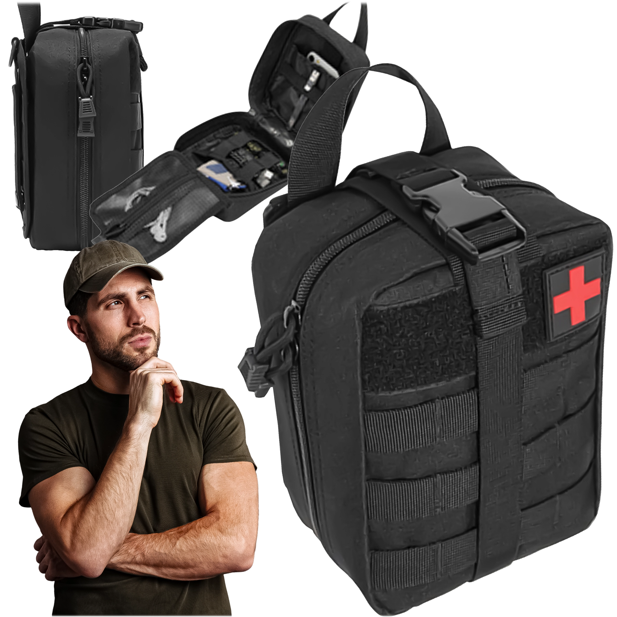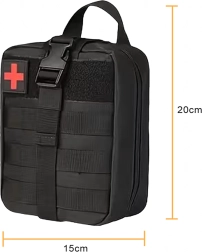 Kompakt taktisk førstehjælps-taske designet til vandring, camping, survival og daglig brug. Takket være MOLLE-fastgørelse kan den nemt sættes på rygsæk, vest eller i bilen. Robust udførsel, hurtig lynlåsåbning og overskuelig indvendig organisering for øjeblikkelig adgang til nødvendigt udstyr.