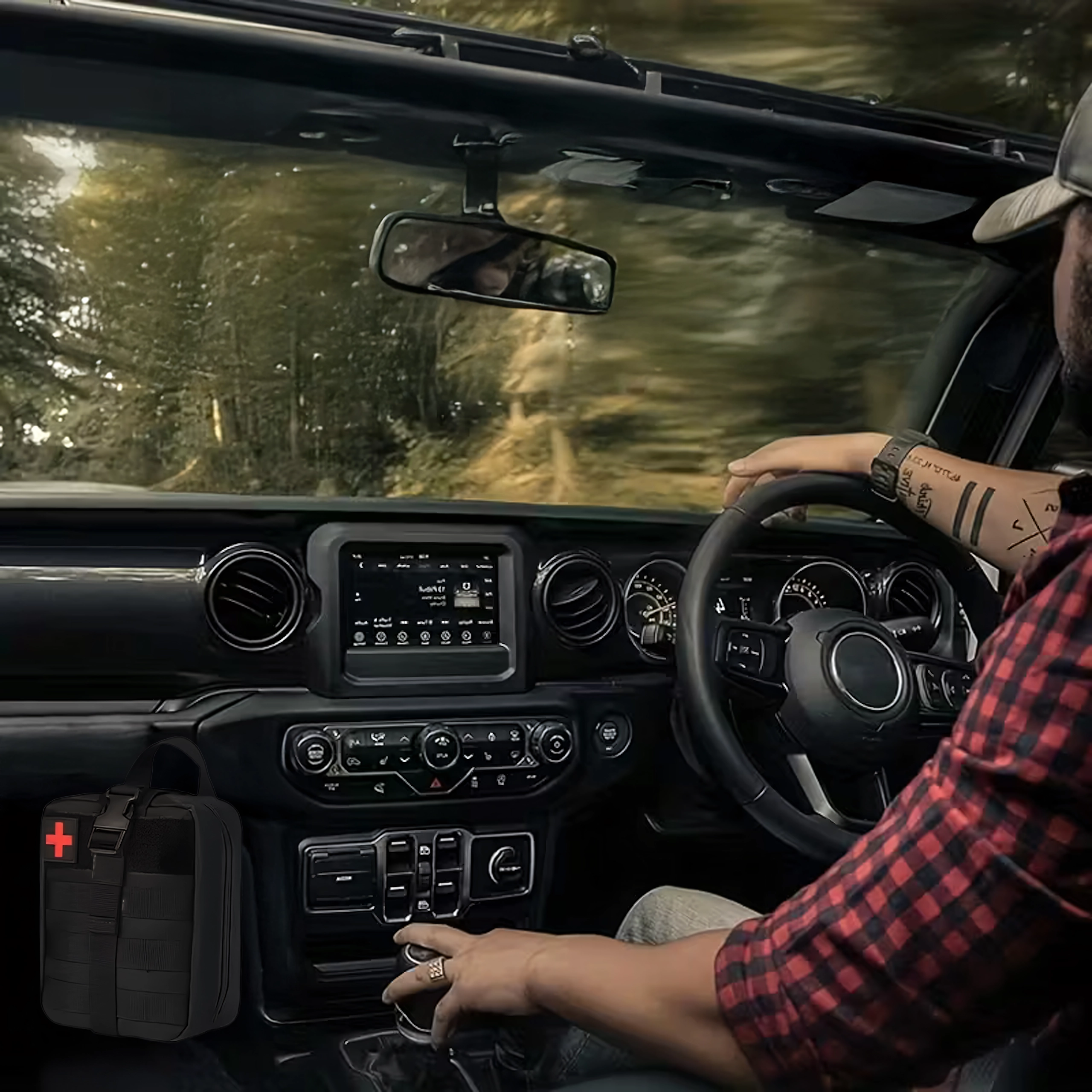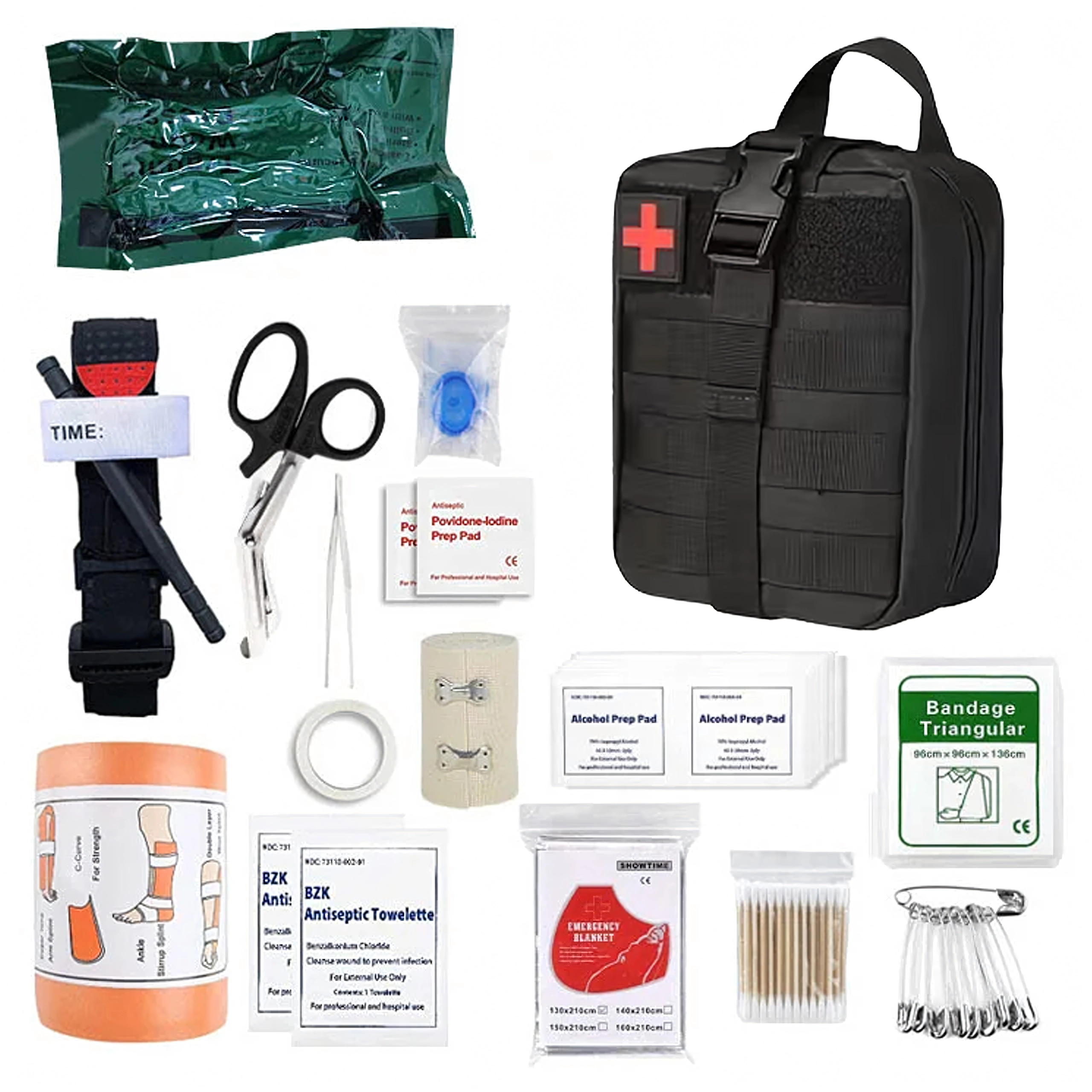 - 1× taktisk førstehjælps-taske (uden indhold, medmindre andet er angivet)