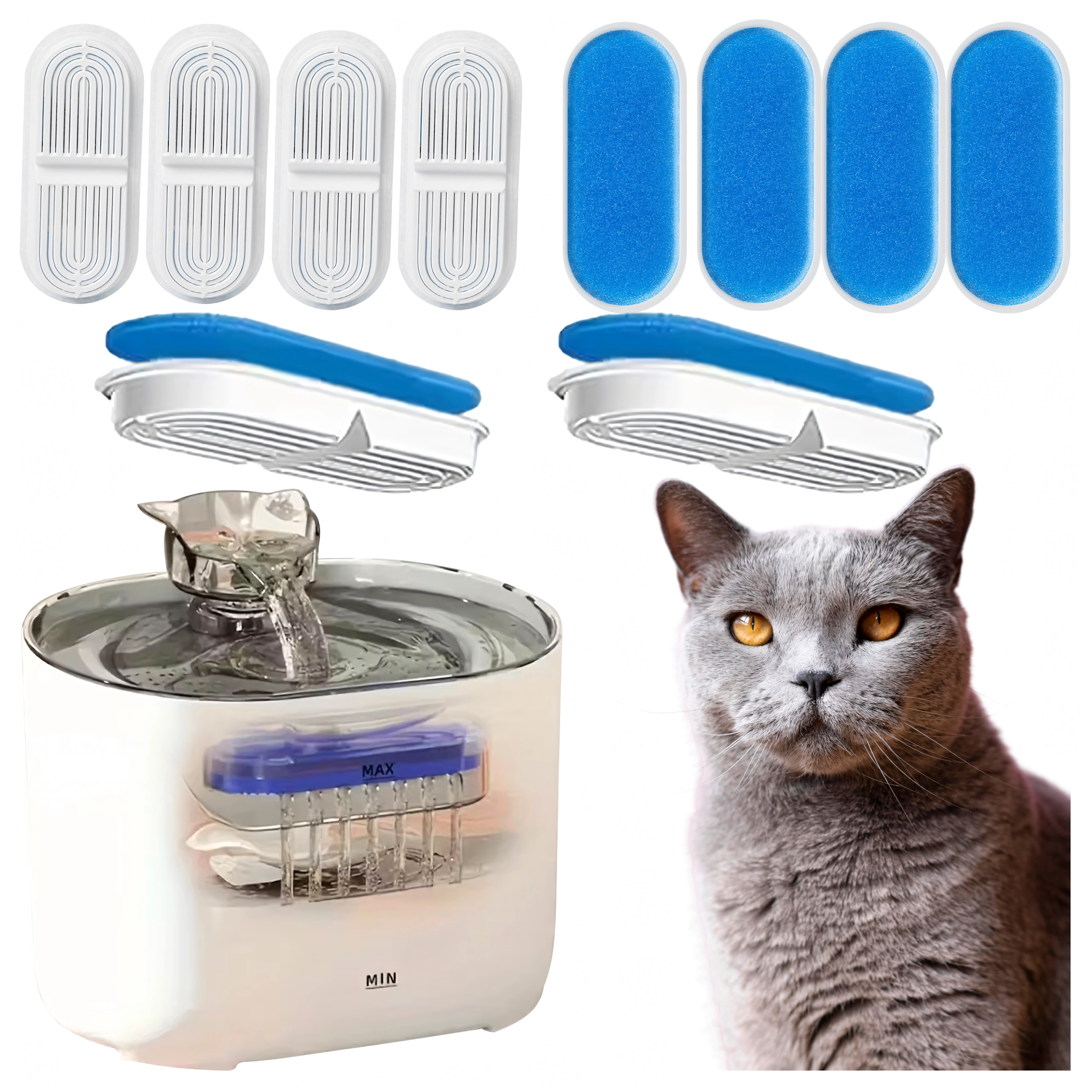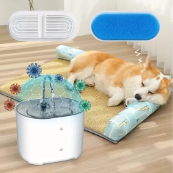 Regelmæssig udskiftning af filtre er nøglen til en sund drikkerutine for kæledyr. De lagdelte filtre kombinerer skumforfiltrering og en fin filterindsats, som hjælper med at fjerne urenheder fra vandet og holde fontænen i fejlfri drift. Sættet med 8 stk. rækker til flere måneders brug afhængigt af hvor meget fontænen anvendes.