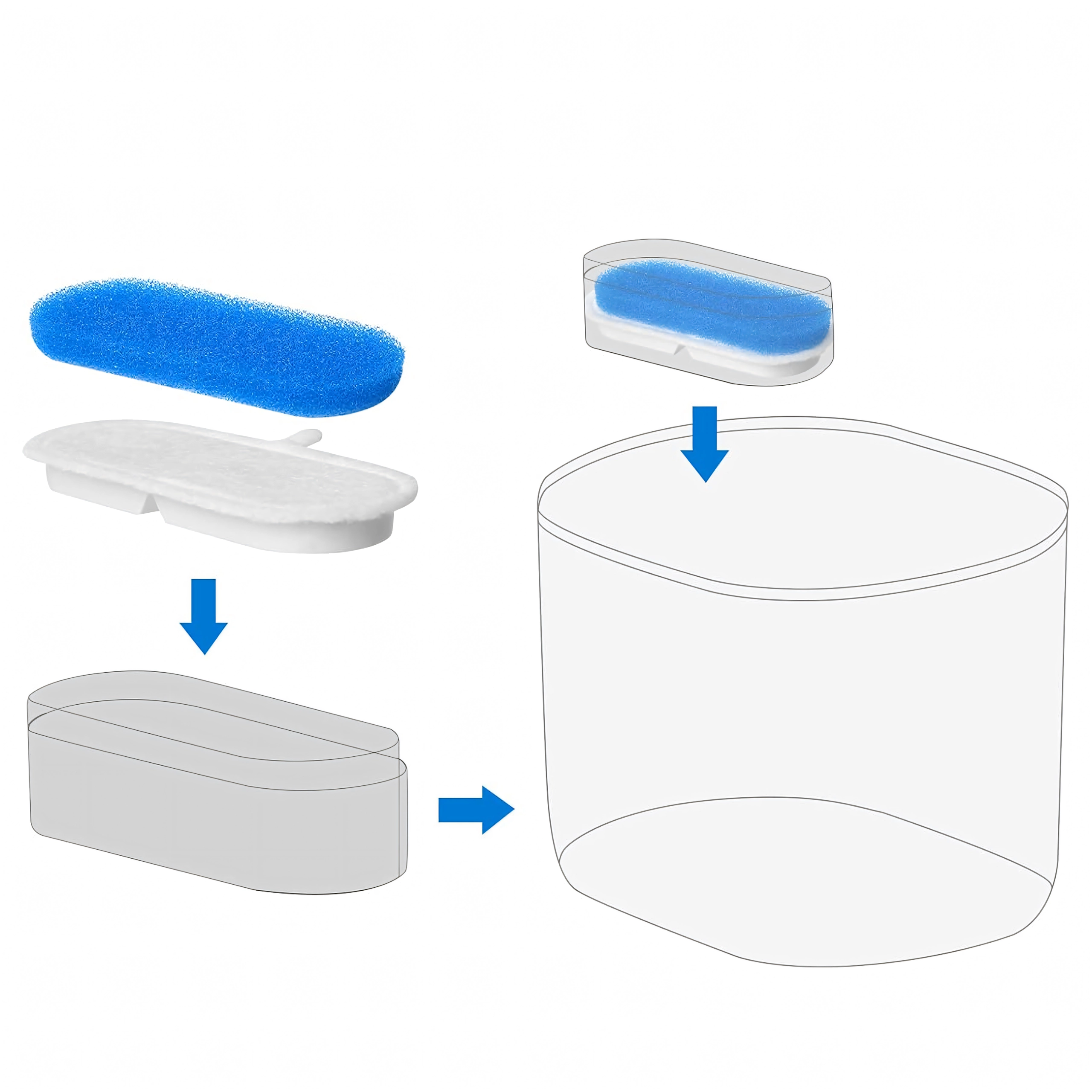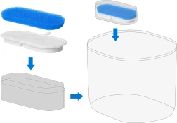 Læg blot filtrene i det angivne rum i fontænen. Hurtig udskiftning uden værktøj sparer både tid og besvær.