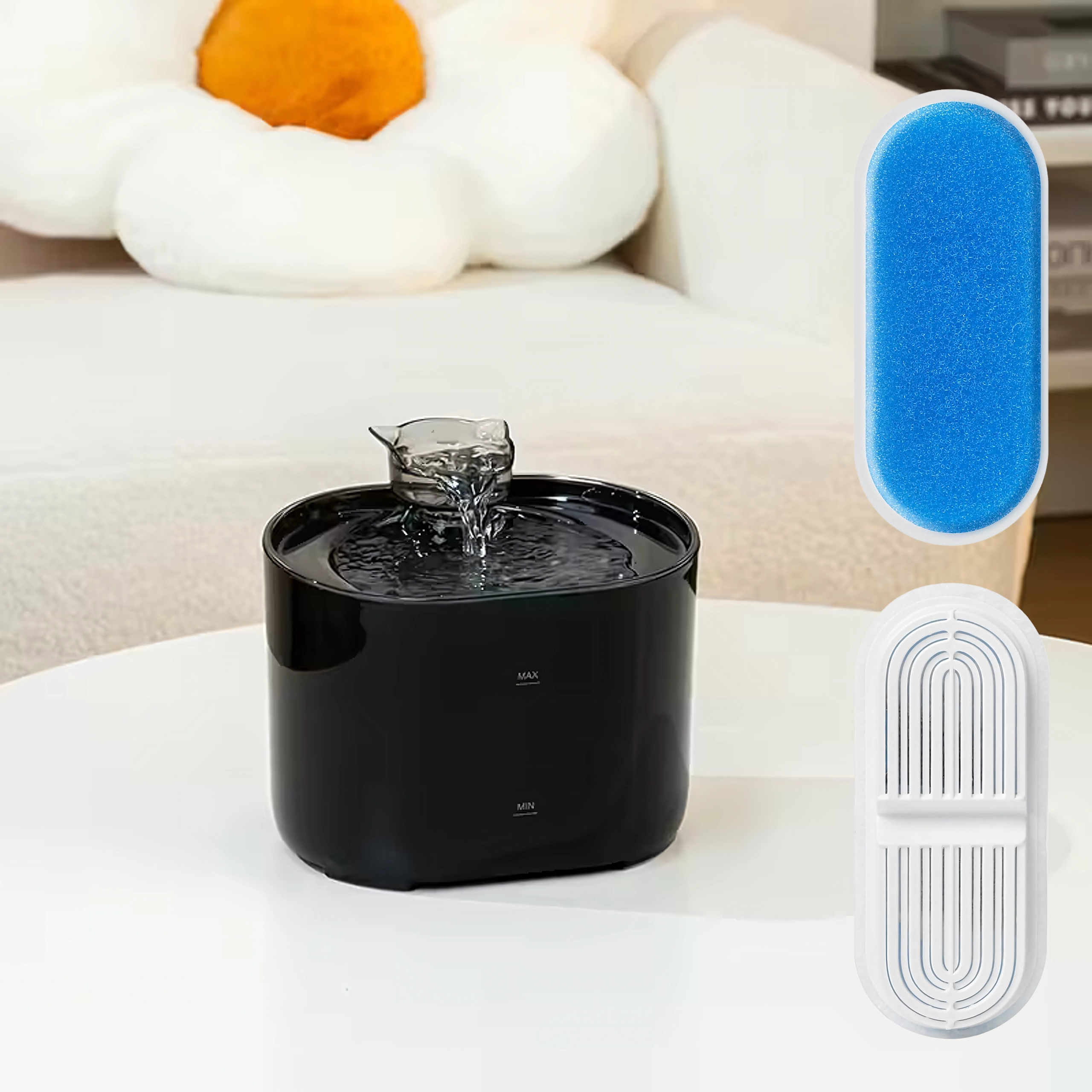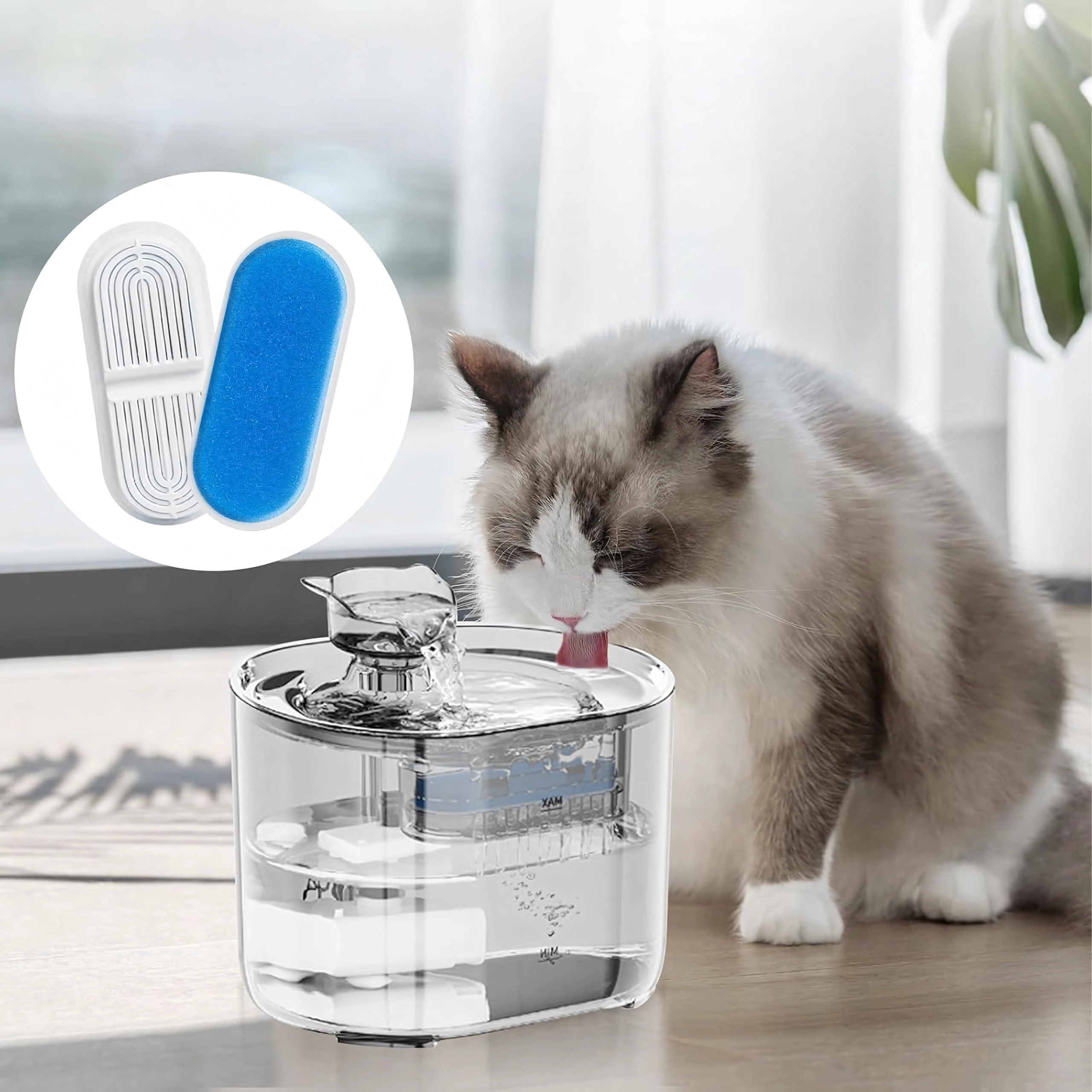 Kombinationen af et skumforfilter og en fin filterindsats opfanger effektivt hår og små partikler, så dit kæledyr drikker renere og mere velsmagende vand.