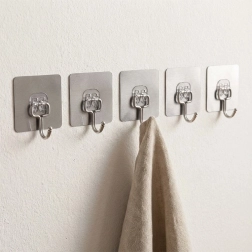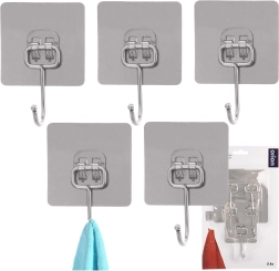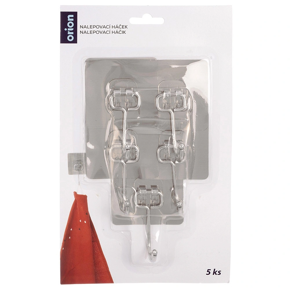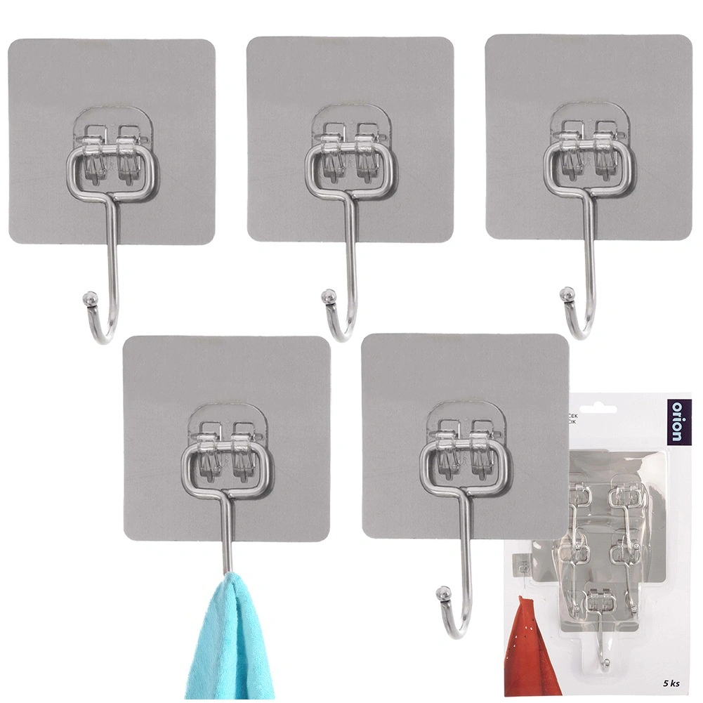 Praktisk sæt med fem selvklæbende kroge til enhver husstand. Takket være stærk vedhæftning sidder de fast på glatte overflader uden behov for boring. Fremstillet af holdbart rustfrit stål, ideelle til køkken og badeværelse til håndklæder, viskestykker, morgenkåber eller nøgler. Nem montering – affedt, tryk på, og færdig.