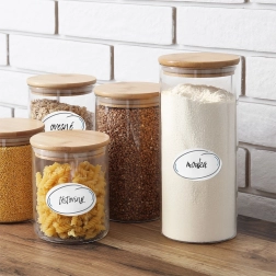 Det elegante hvide design virker rent og velordnet – glassene bliver også et dekorativt element i dit hjem. Etiketterne kan også bruges til gaveindpakning eller sortering af husholdningsartikler.