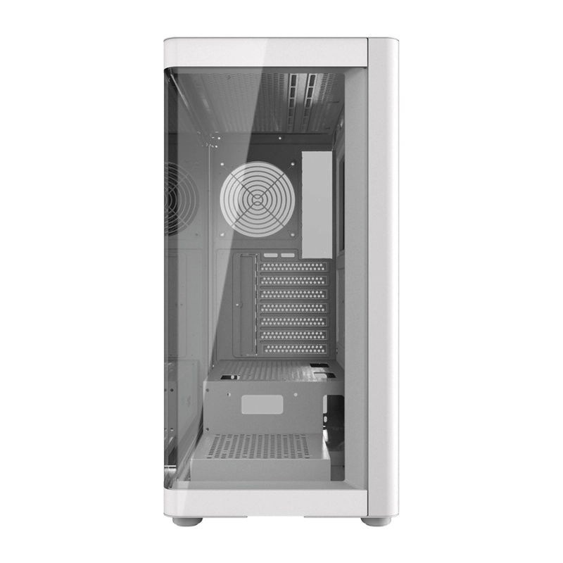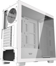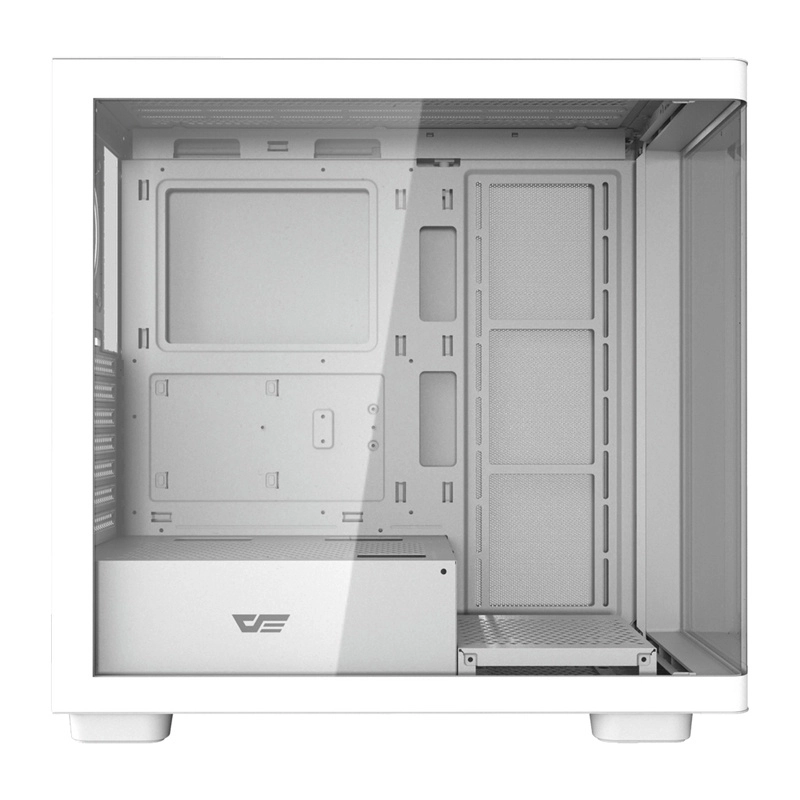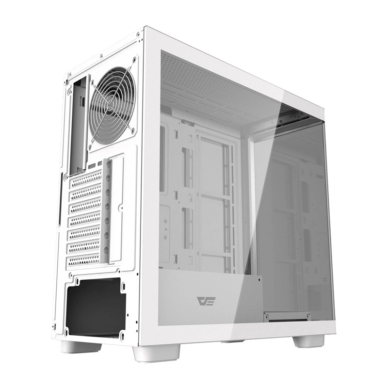 DarkFlash DS900G er et moderne kabinet til både gamere og skabere, der ønsker et rent design og fremragende airflow. Den buede sidepanel i hærdet glas giver et panoramisk kig til komponenter og belysning, mens et gennemtænkt luftflow sikrer lave temperaturer selv i kraftige systemer.
