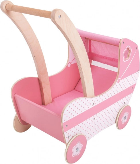 Denne smukke lyserøde barnevogn til dukker er udstyret med en stofkalesje og dekorative udsmykning, der vil glæde enhver lille pige. Legetøjet hjælper med at udvikle kreativitet og sociale færdigheder hos børn.