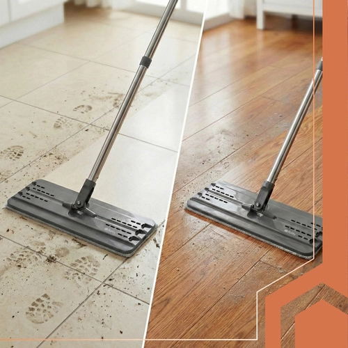 Tæt mikrofiber opfanger fint støv og indtørret snavs og efterlader gulvet rent og skinnende uden synlige spor.