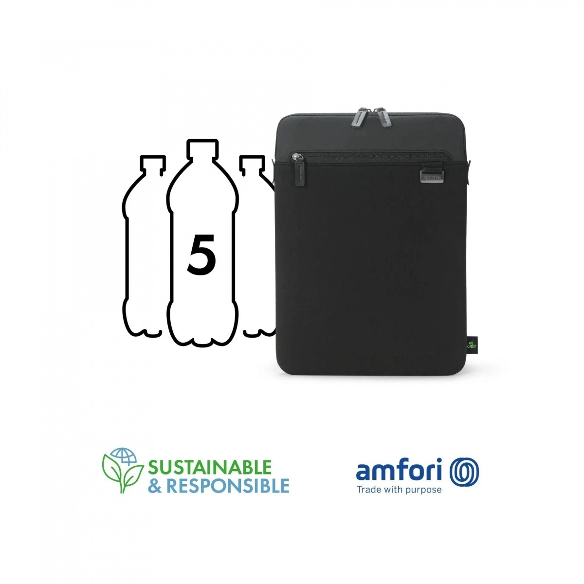 Den forreste lomme med lynlås giver praktisk plads til tilbehør og dokumenter, mens hovedrummet muliggør hurtig udtagning af enheden eller opbevaring i en større taske. Takket være robuste, genanvendte materialer er sleevet ikke kun solidt, men også skånsomt for miljøet.
