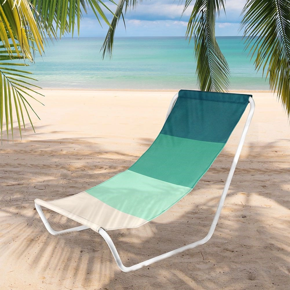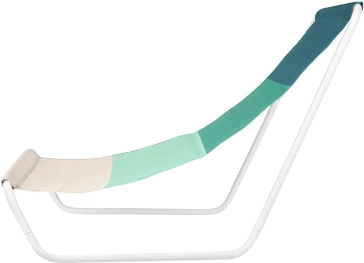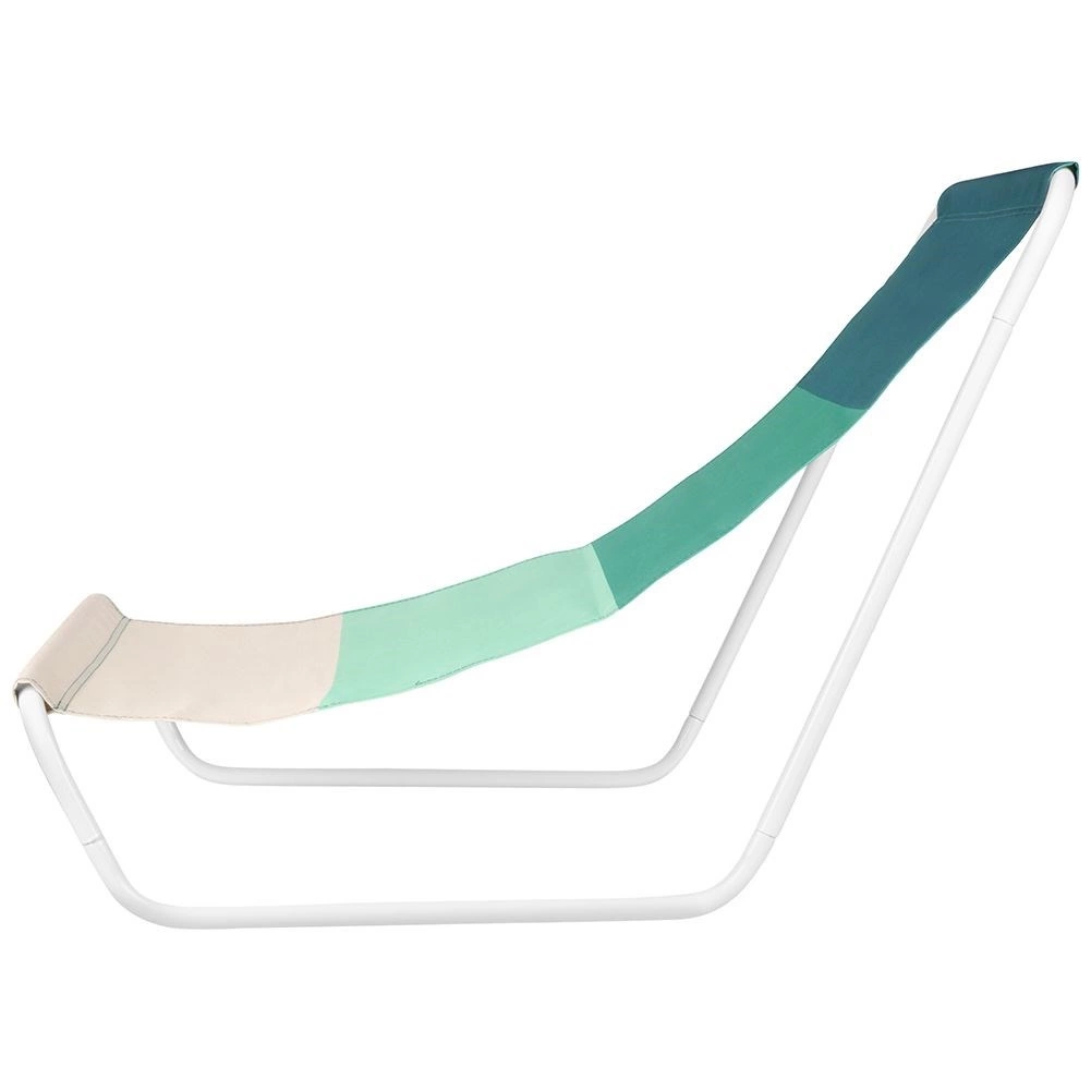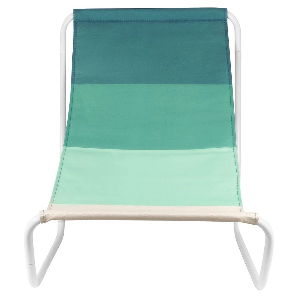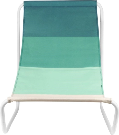 Denne komfortable strandstol giver skøn afslapning takket være det ergonomisk formede sæde og det åndbare tekstil i grønne nuancer. Den hvide metalramme er let og samtidig robust, så du nemt kan transportere stolen og få stabil støtte til hvile.