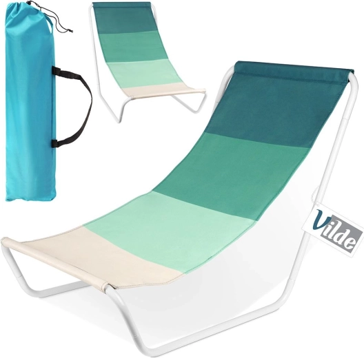Nyd komfort hvor som helst med denne lette og sammenklappelige strandstol i grønne nuancer. Stabil metalkonstruktion i hvid, slidstærk polyestertekstils og nem transport inkl. taske gør stolen til et ideelt valg til strand, have og altan. Maksimal bæreevne 90 kg, sædemål 86 × 51,5 cm, stofbredde 44,5 cm.