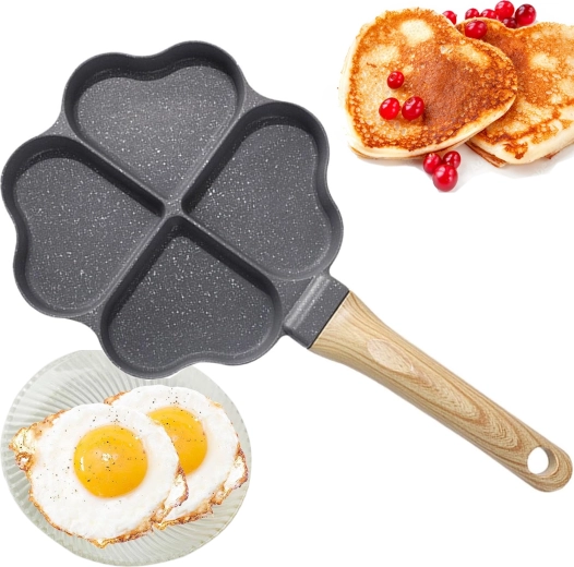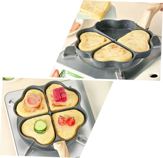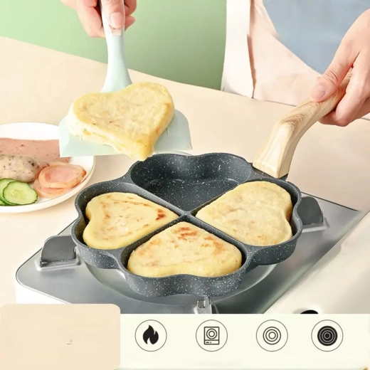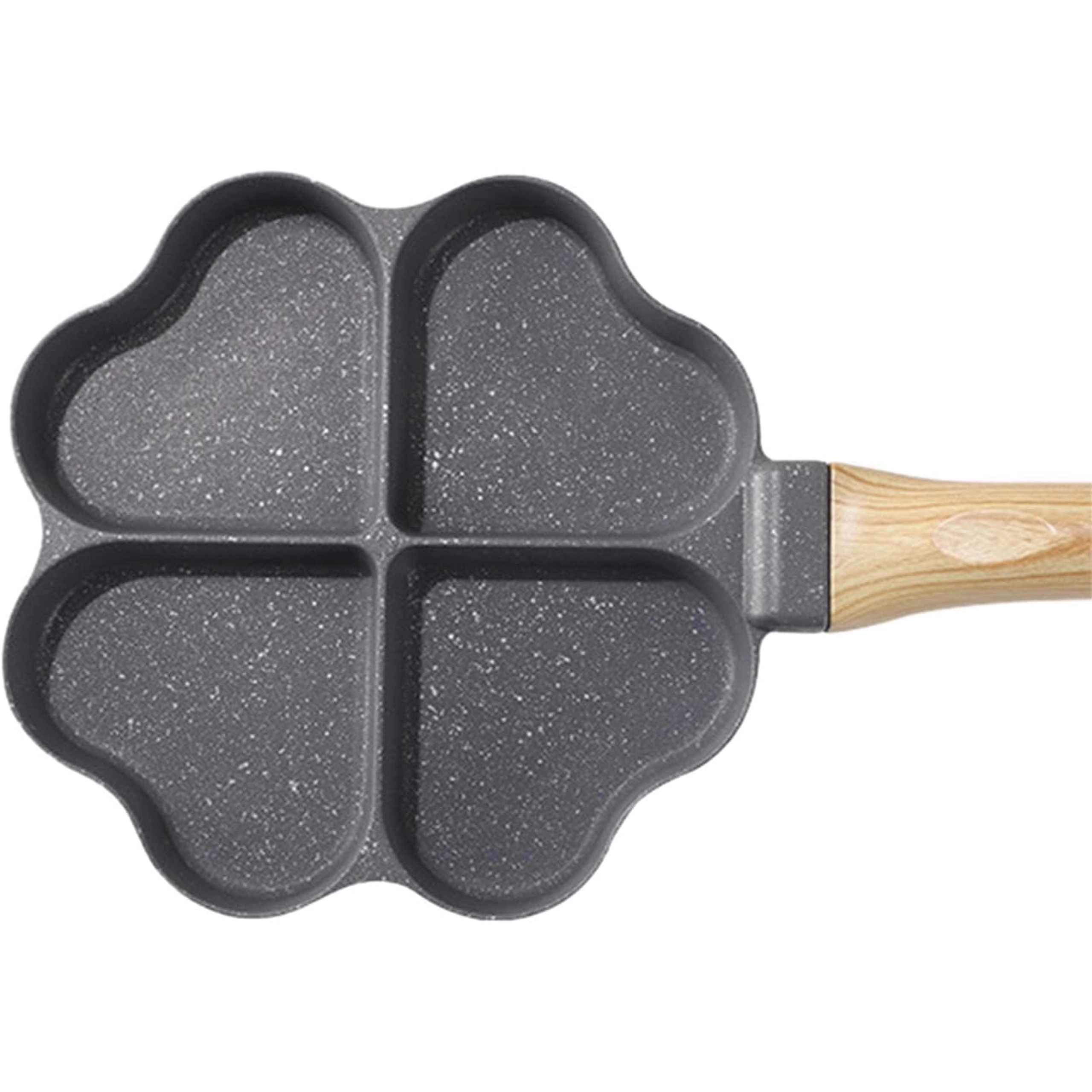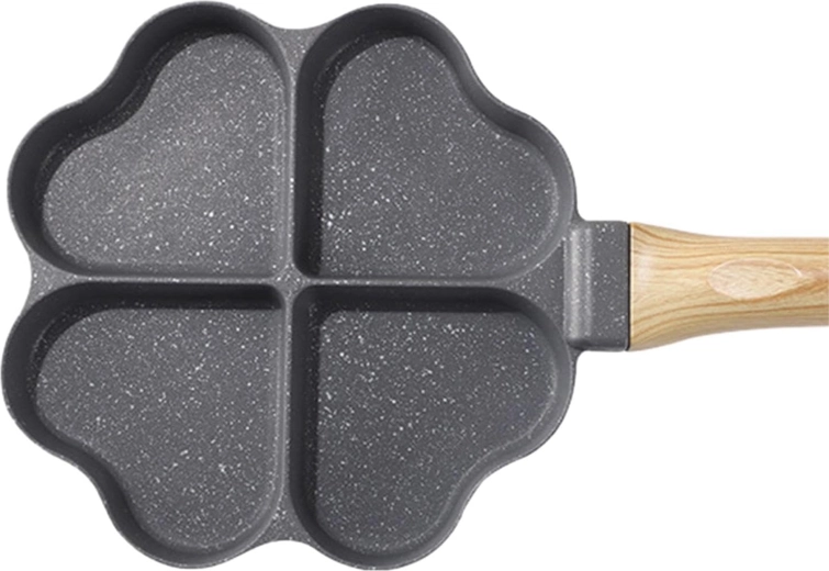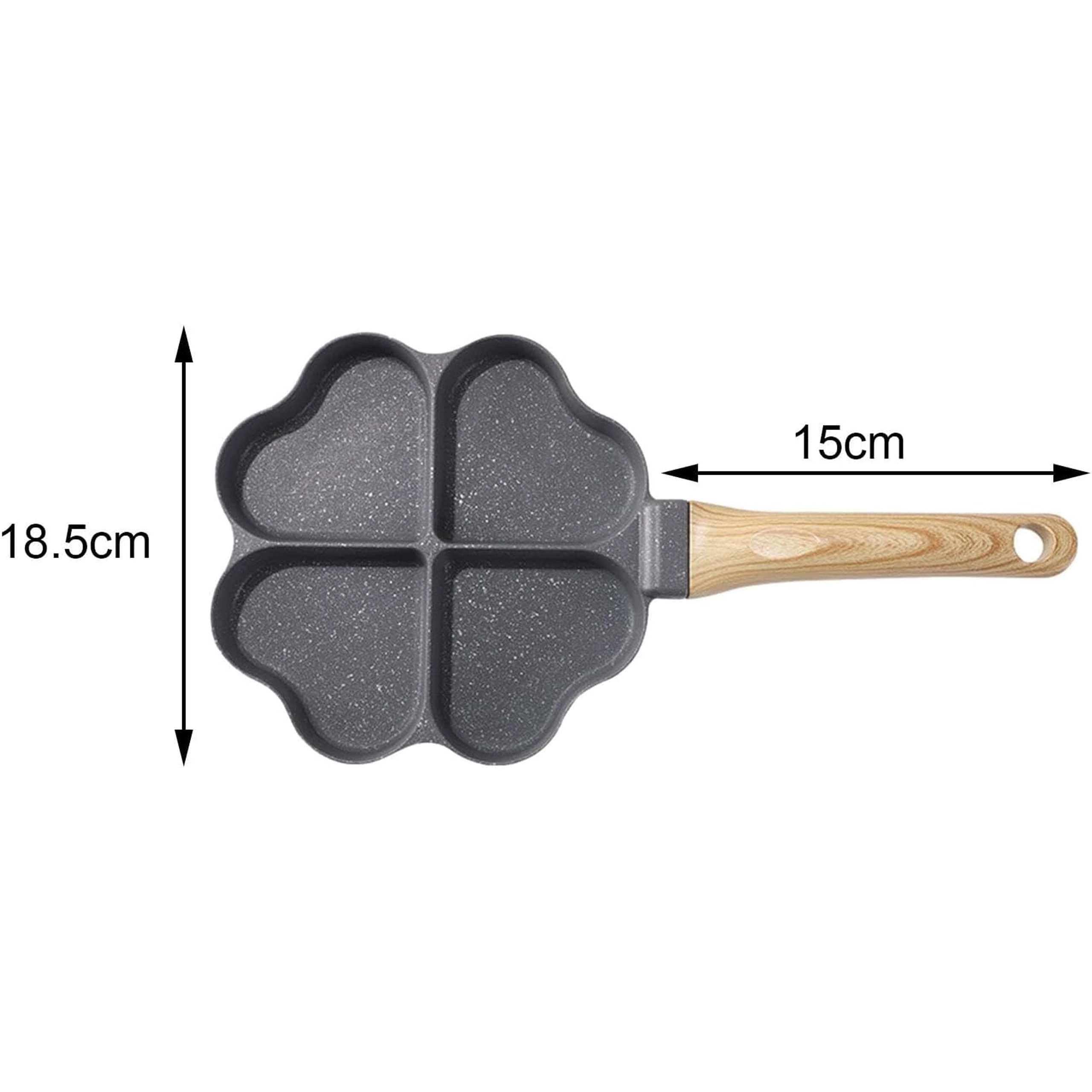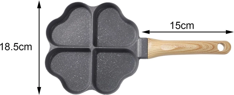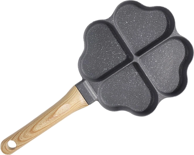 Denne pande med fire hjerteformede rum er ideel til at lave ensartede portioner – pandekager, æg, røsti eller små frikadeller. Den non-stick, let rengørlige overflade sikrer ren vending og enkel rengøring, mens de opdelte sektioner holder hver portion pænt formet.