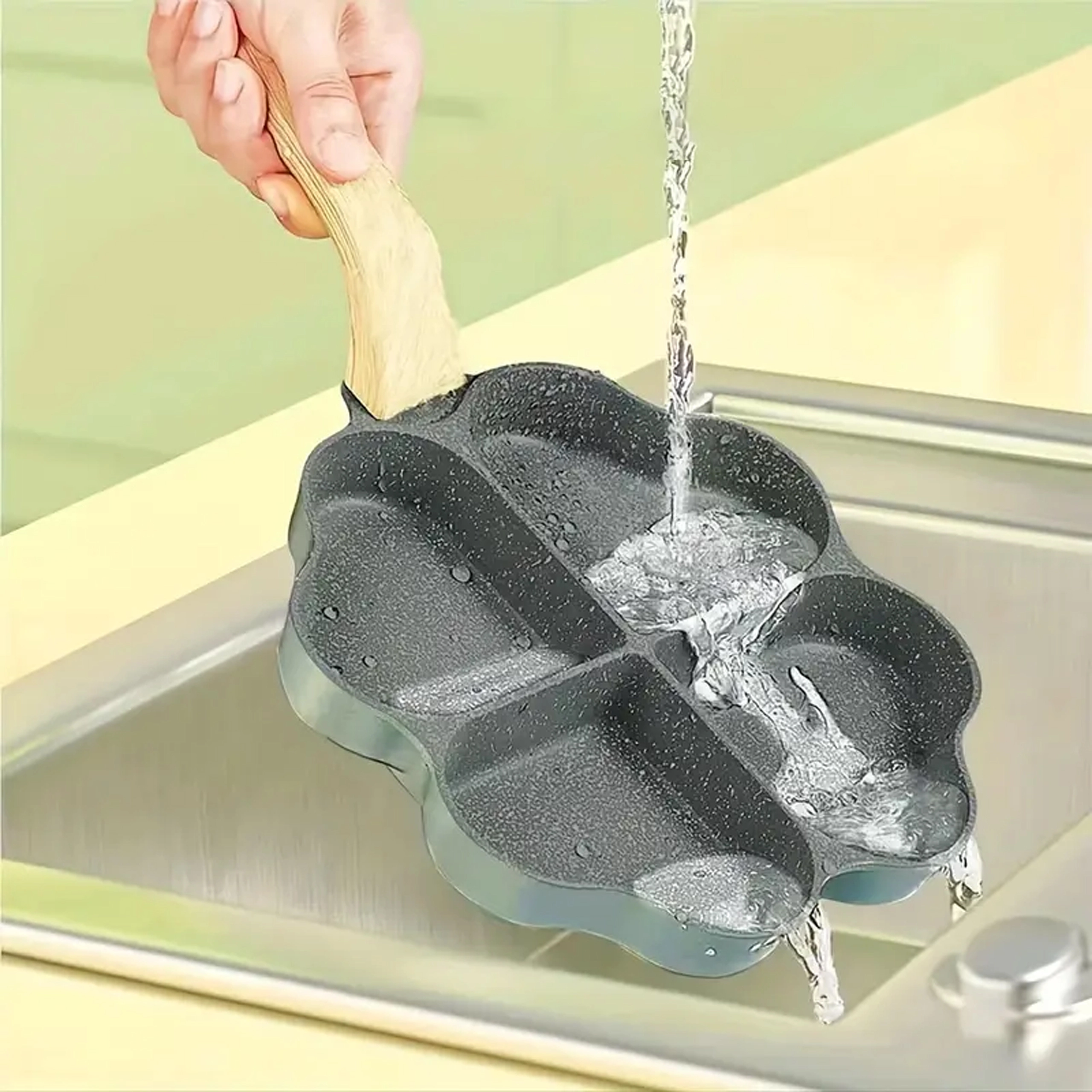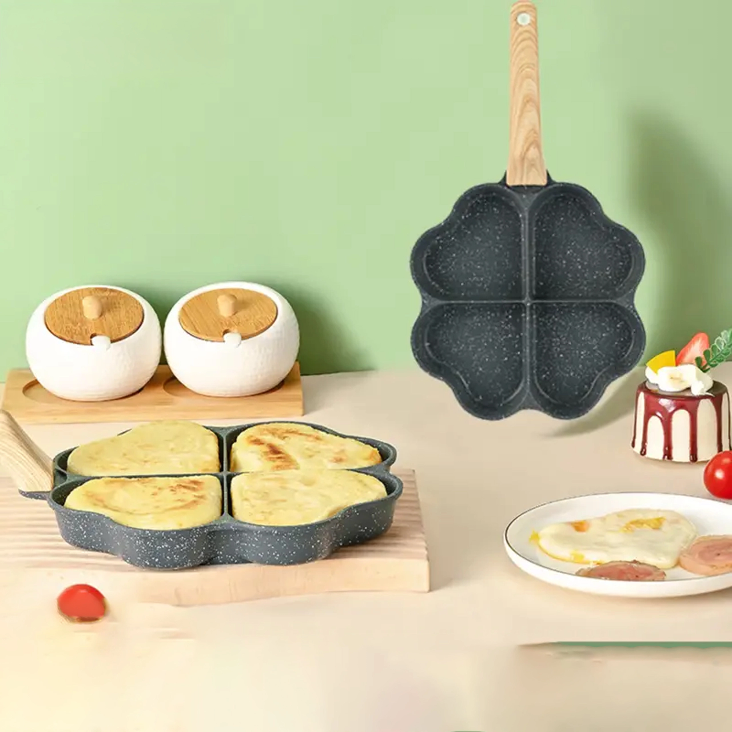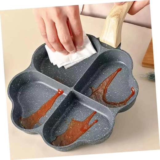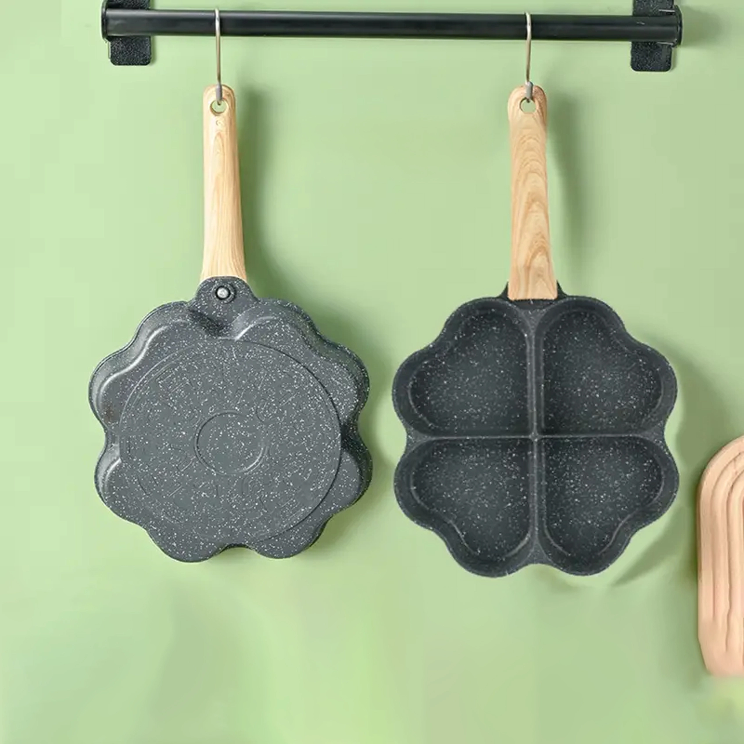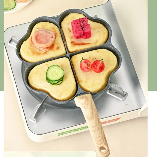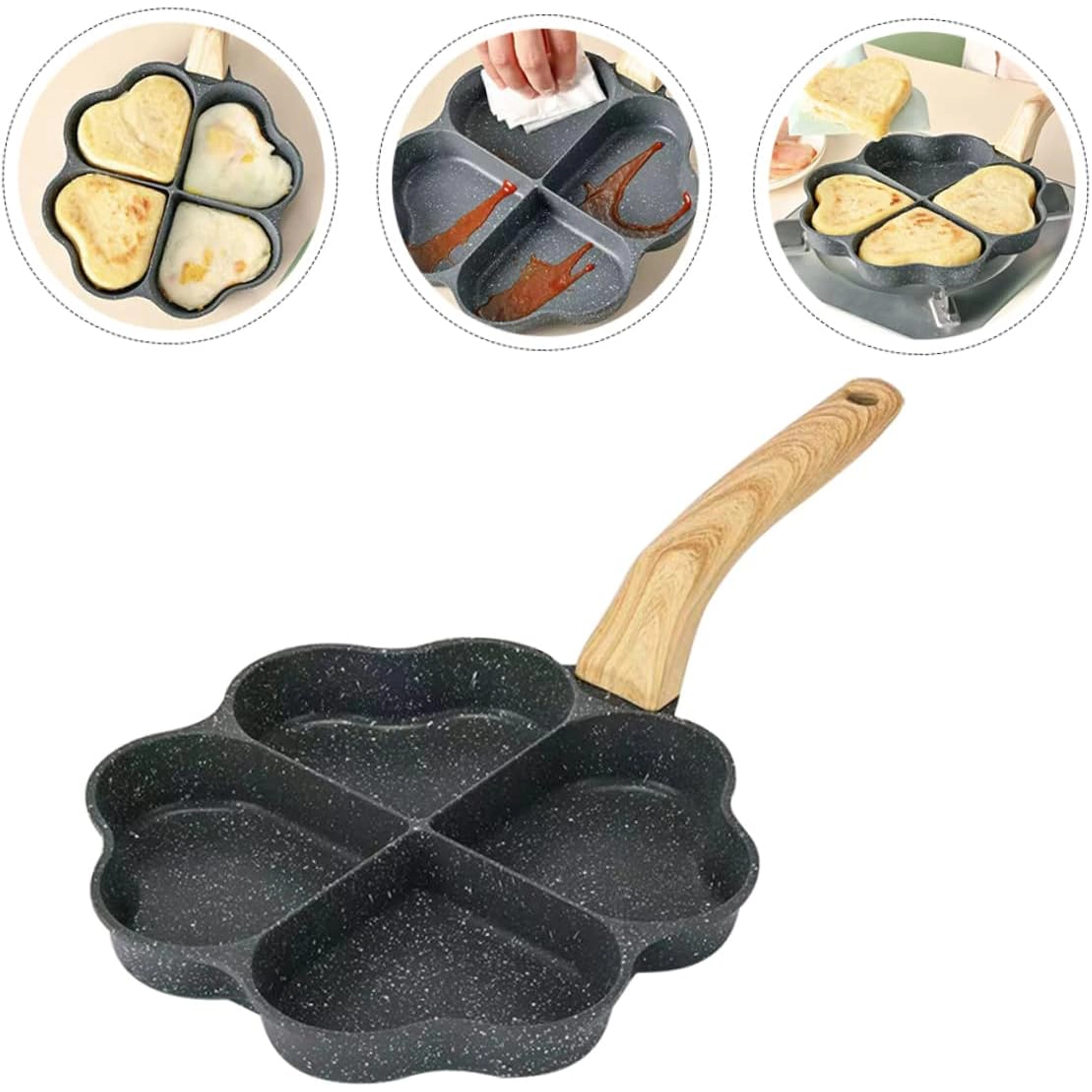 Denne pande med fire hjerteformede rum er ideel til at lave ensartede portioner – pandekager, æg, røsti eller små frikadeller. Den non-stick, let rengørlige overflade sikrer ren vending og enkel rengøring, mens de opdelte sektioner holder hver portion pænt formet.