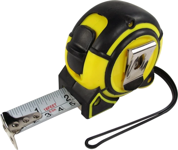 Med den praktiske lås holder du båndet i den valgte position uden uønsket oprulning, endekrogen hviler fast mod kanter og forbedrer målenøjagtigheden. En metalclips til fastgørelse på bæltet og en rem til nem transport er inkluderet.