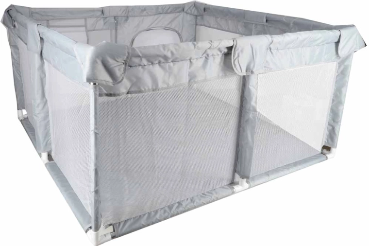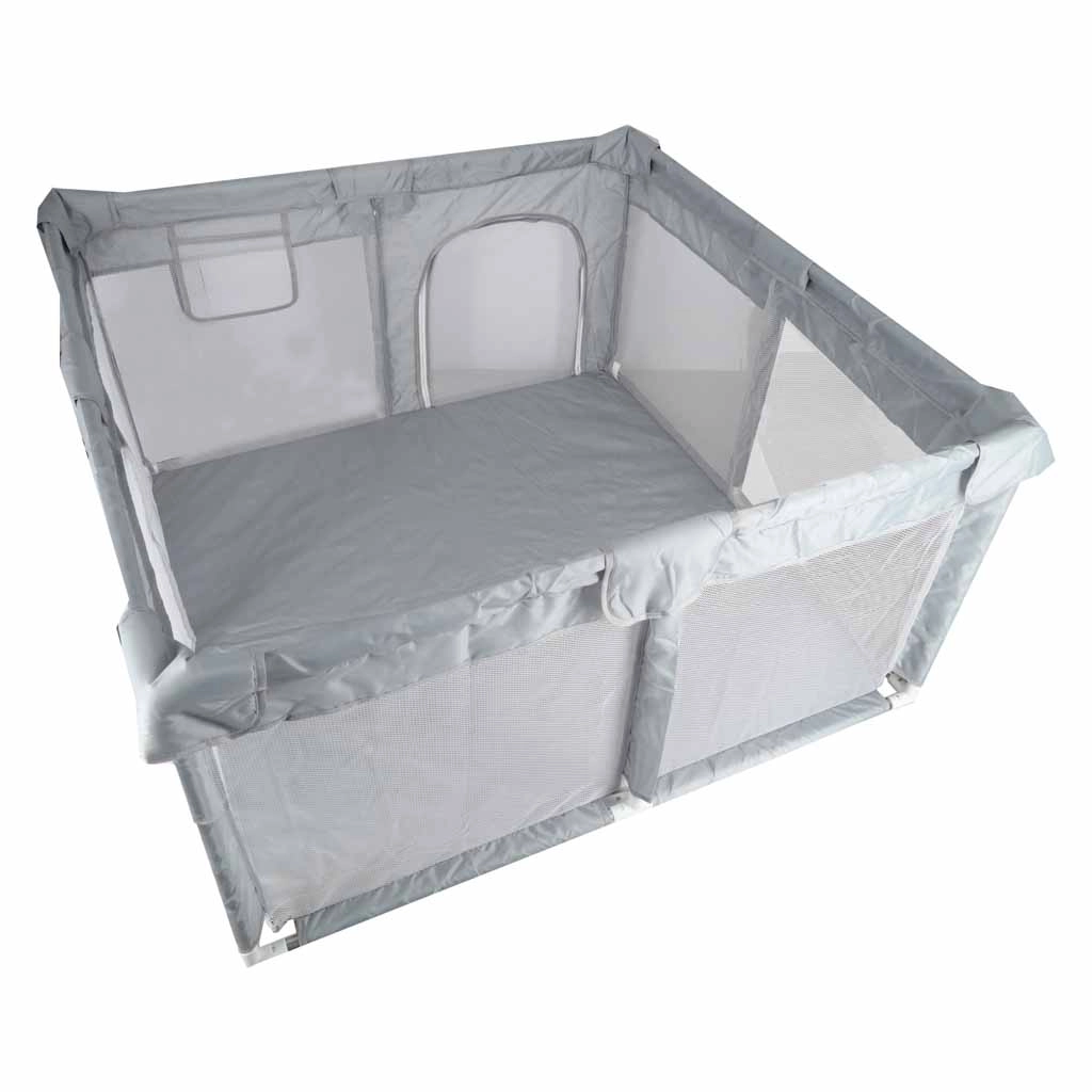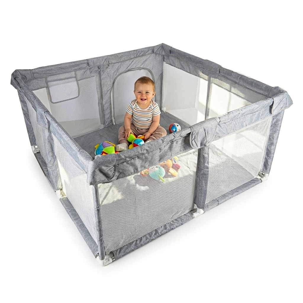 Denne sammenklappelige børnegård giver børn fra 6 måneder et sikkert, luftigt og overskueligt område til leg og ro. Net-siderne sikrer fremragende luftcirkulation og bedre overblik for forældre, mens polstrede overkanter øger komfort og sikkerhed.