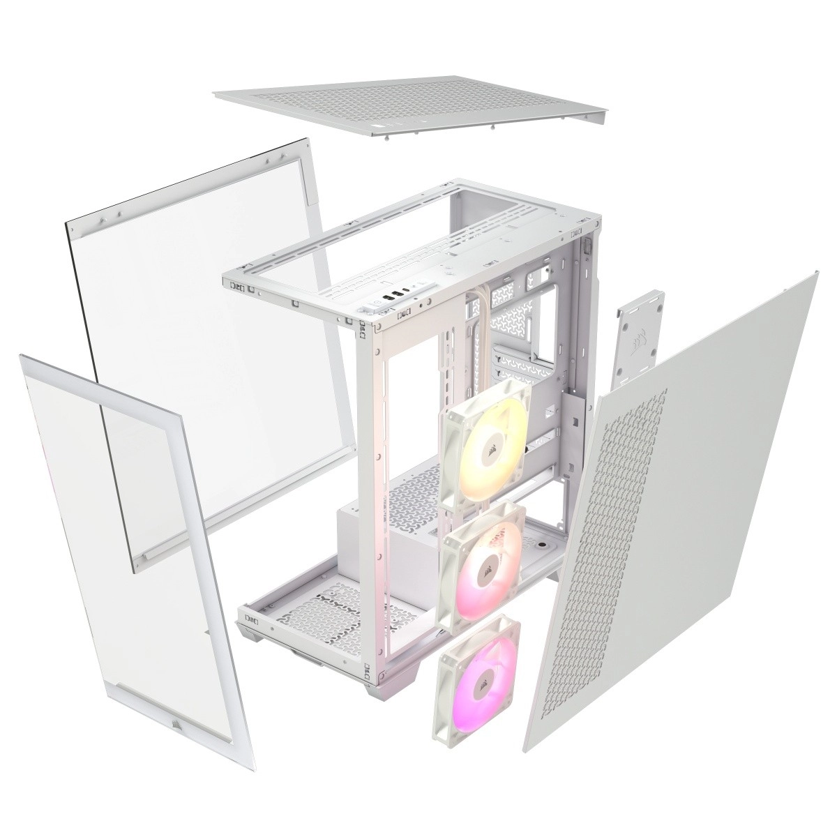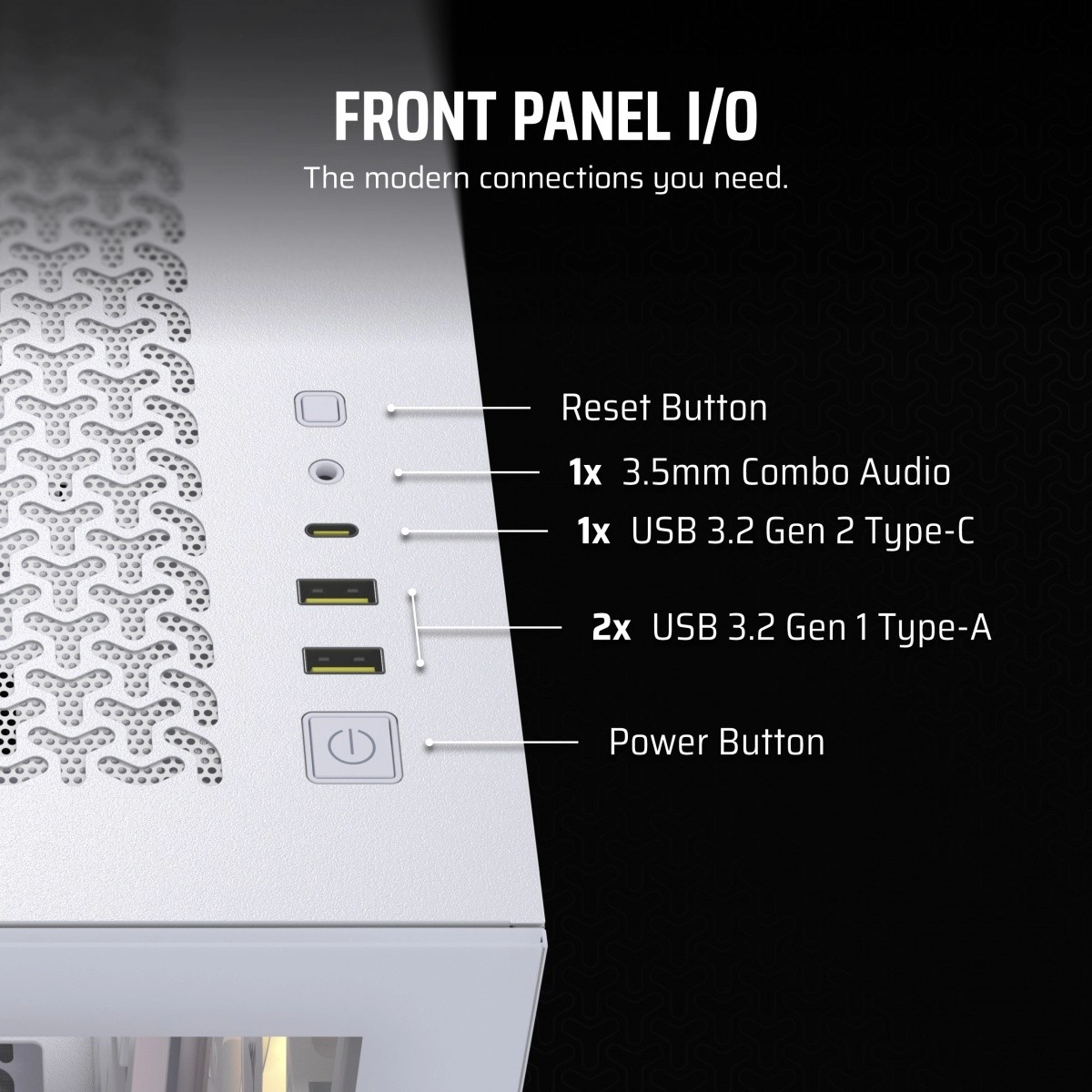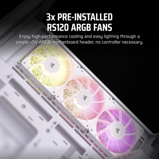 Byg en kraftfuld og elegant PC uden behov for et kæmpekabinet. Corsair 3500X TG rummer store grafikkort, høje CPU-kølere og 360 mm radiatorer og kan endda håndtere EATX-bundkort. Takket være side- og topplaceringer til blæsere og radiatorer kan du nemt tilpasse luftstrømmen præcist efter dine behov.