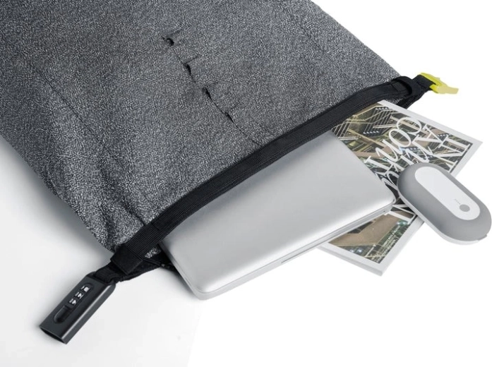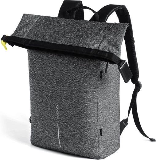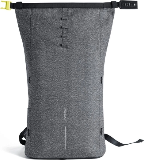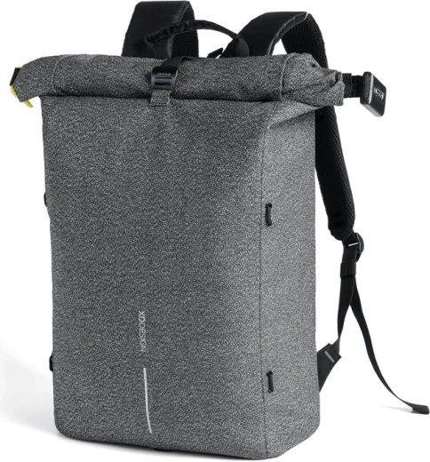 Leder du efter en sikker byrygsæk, som holder dine ting trygge og samtidig ser godt ud? Denne grå roll-top i minimalistisk design kombinerer skæresikkerhed, integreret kodelås og skjulte lommer med RFID-beskyttelse, så dine dokumenter, kort og elektronik forbliver sikre. Den vandafvisende konstruktion og refleksdetaljer øger synligheden selv i tusmørke.
