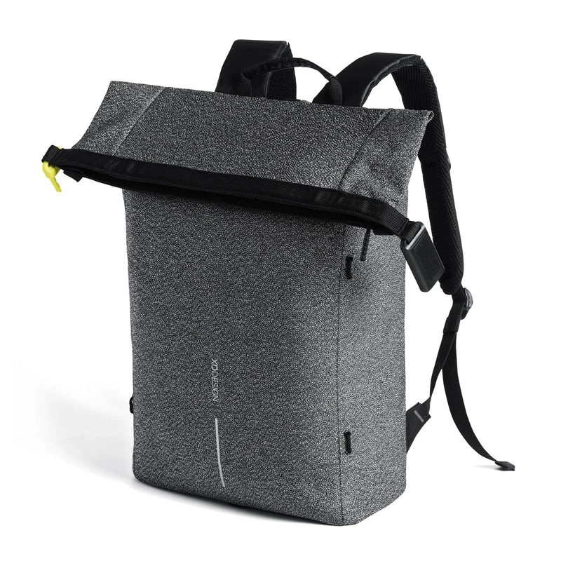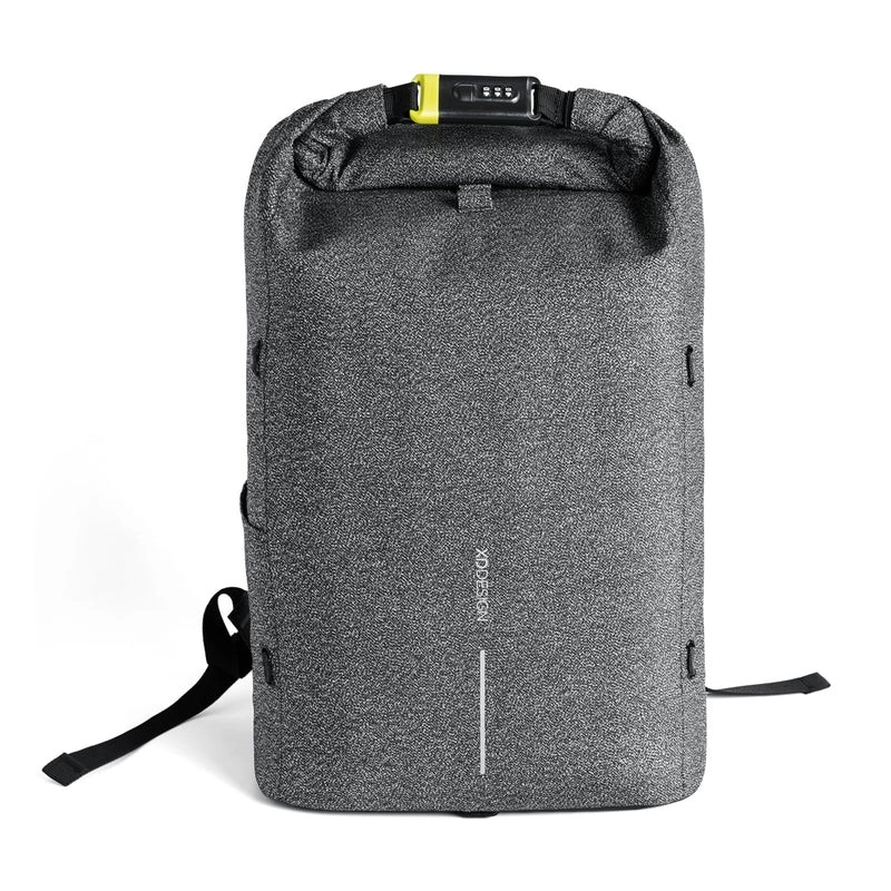 En sikker og stilfuld ledsager til byen og på rejser. Denne grå roll-top-rygsæk tilbyder skæresikkert materiale, kodelås, skjulte lommer med RFID-beskyttelse og vandafvisende design. Med udvidelig kapacitet op til 27 l, polstrede stropper og smart indretning får du komfort, beskyttelse og overblik over dine ting.