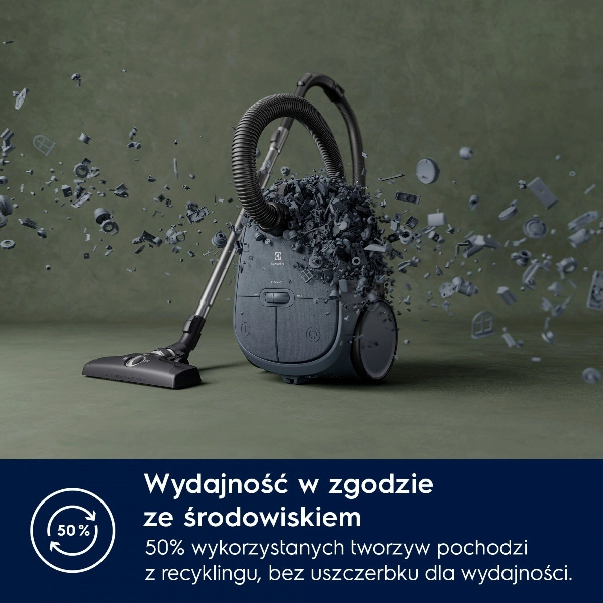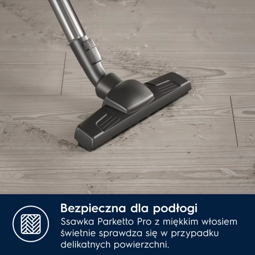 Praktisk fodbetjening gør det muligt at ændre effekt, rulle kablet op eller tænde og slukke uden at bøje dig. Store, letmanøvrerbare hjul sikrer jævn bevægelse på forskellige gulvtyper, og 12 meters rækkevidde minimerer behovet for at skifte stikkontakt. Støvsugeren er desuden økologisk – op til 50 % af plasten er genanvendt, og emballagen tager hensyn til miljøet.