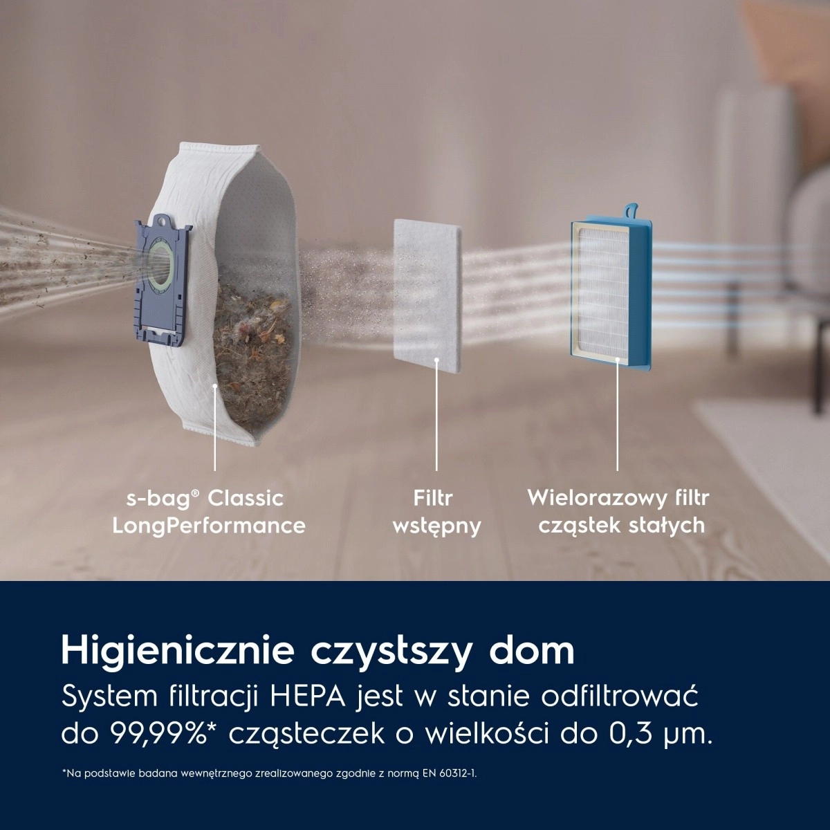 Nyd grundig rengøring uden kompromiser. Dust Magnet Silent-mundstykket er designet til maksimal effektivitet på både hårde gulve og tæpper og opnår opsamling af op til 100 % støv i fuger*. Det avancerede HEPA-filter opfanger fine partikler på 0,3 μm, herunder støv, husstøvmider og allergener, så du får renere luft i hjemmet.