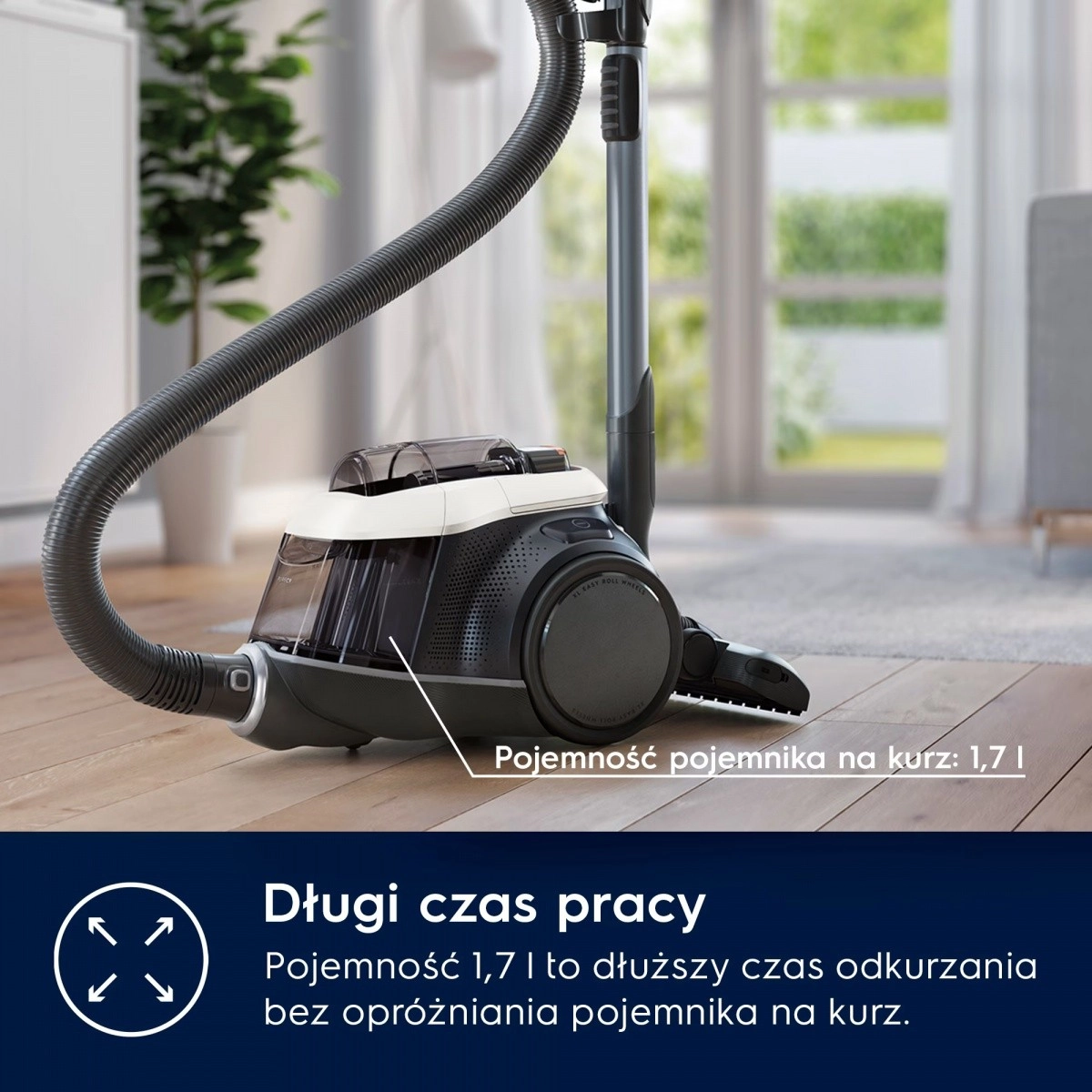 Modellen PURE C9 PC91-ALRG er designet til maksimal hygiejne og komfort. Den fuldt forseglede konstruktion med PureFlow-systemet minimerer støvudslip og optimerer luftstrømmen for konstant sugeevne. Takket være 7-trins filtrering med 3D-filter opnår støvsugeren høj effektivitet selv ved langvarig brug.