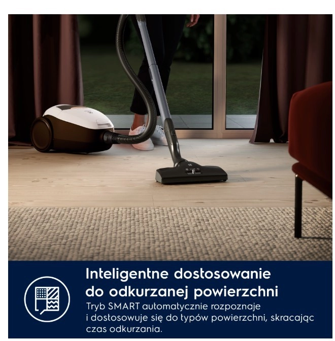 Nyd virkelig støjsvag støvsugning med et lydniveau på kun 57 dB(A) og den smarte SmartMode-teknologi, som automatisk tilpasser sugekraften til gulvtypen. Det nye mundstykke OneGo Power Clean opsamler perfekt støv på tæpper og hårde gulve, og HEPA-filtrering opfanger op til 99,99 % af fine partikler og allergener for renere luft i hjemmet.