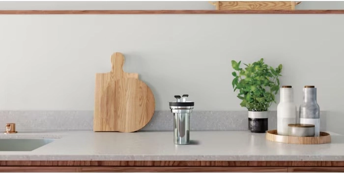 For renere vand og bedre smag er kedlen udstyret med et filter, der modvirker kalkaflejringer. Den stabile roterende base med touchbetjening gør daglig brug nem, og det elegante design passer perfekt i det moderne køkken.