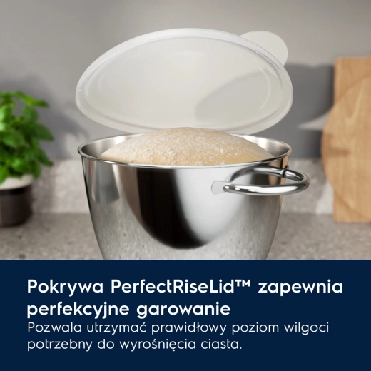 Integreret planetarisk omrøring arbejder alle ingredienser jævnt ind og gør dejtilberedningen op til 20 % hurtigere. Takket være LED-belysningen har du perfekt kontrol over konsistensen, selv i svagere lys, og låget PerfectRiseLid sikrer ideelle betingelser for hævning – korrekt luftcirkulation og fugt uden at overfladen tørrer ud.