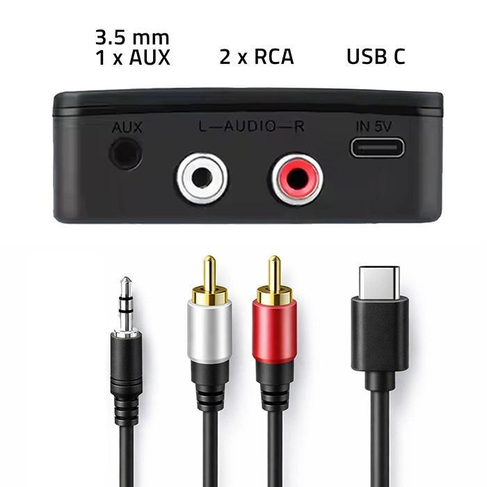 Bred kompatibilitet takket være 2× RCA og 3,5 mm AUX. Ideel til at modernisere ældre Hi‑Fi-systemer, forstærkere og bilradioer uden at udskifte udstyret. Plug & Play betyder ingen driverinstallation – tilslut og brug med det samme.