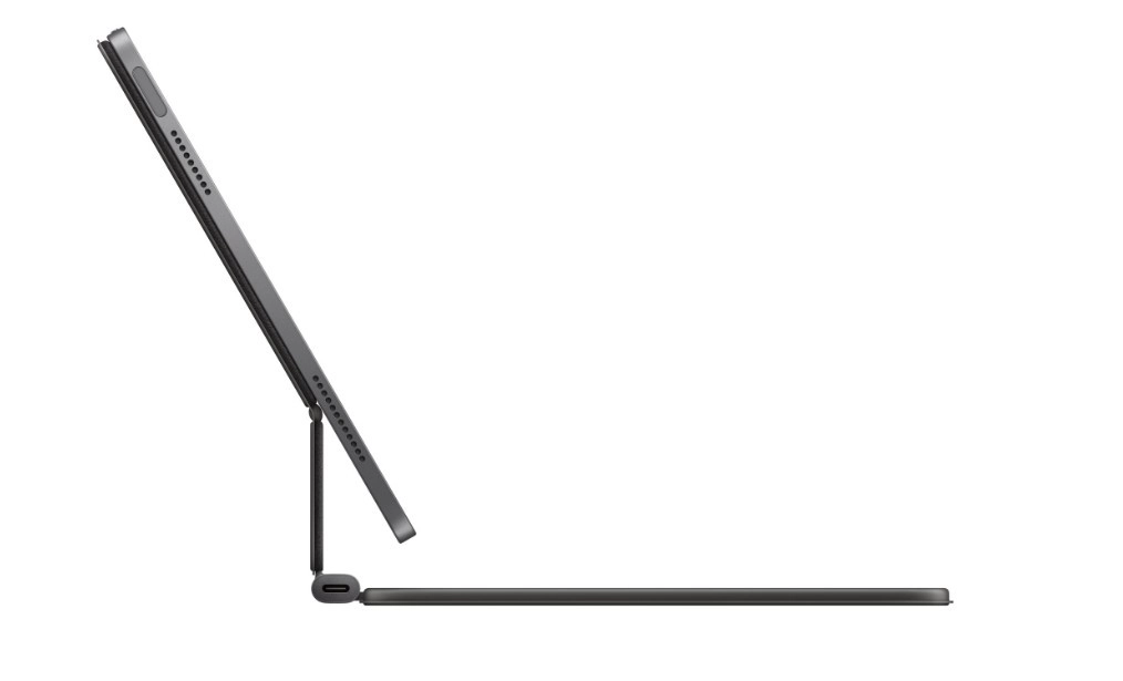Den separate række med 14 funktionstaster forenkler hverdagsstyring – skærmlys, lydstyrke, mediekontrol og andre genveje er lige ved hånden. Via USB‑C‑porten på tastaturet kan du oplade iPad og frigøre dens egen port til andet tilbehør. Når den lukkes, bliver Magic Keyboard til et robust folio, der beskytter iPad for- og bagtil under transport.