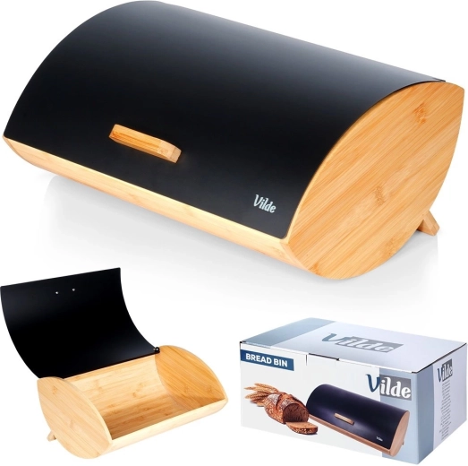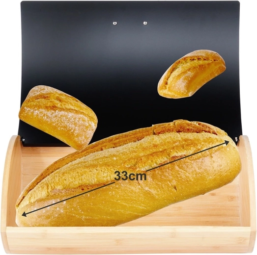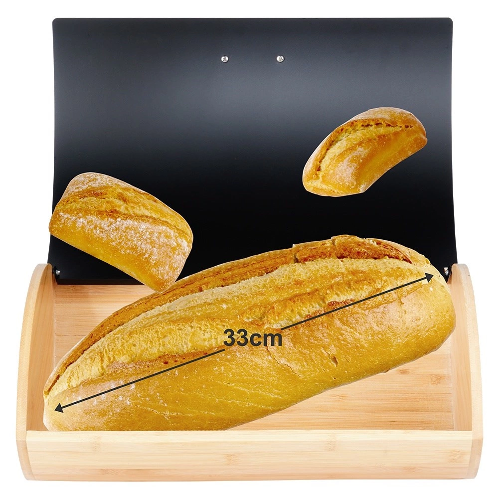 Den praktiske og stilfulde brødboks med målene 35,5 × 24,5 × 15,5 cm er ideel til daglig opbevaring af brød, boller og sødt bagværk. Kassen i bambus er let og stærk, mens låget i pulverlakeret metal i mat sort ser moderne ud og tåler daglig brug.