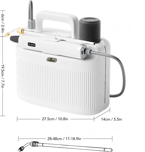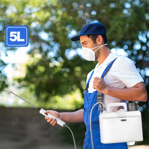 Ikke mere anstrengende pumpning. Denne batteridrevne forstøver bruger et kraftigt 2200 mAh batteri for stabilt tryk og lang driftstid på én opladning. Den rummelige 5 l tank er tilstrækkelig til regelmæssig pleje af bede, stueplanter og mindre arealer, mens det ergonomiske håndtag og det justerbare mundstykke sikrer præcis påføring af vand eller opløsninger.