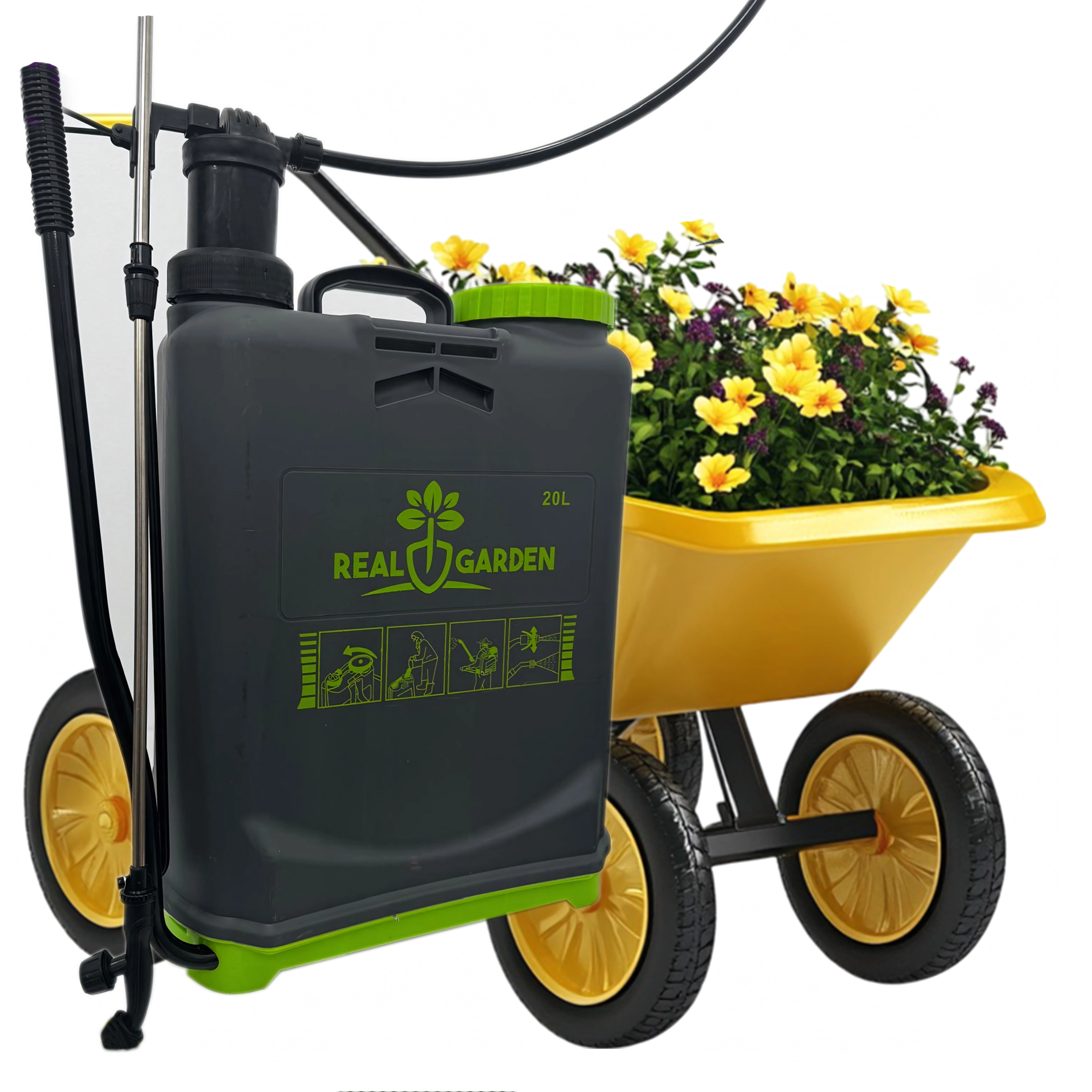 Denne rygmonterede tryksprøjte på 20 l er en pålidelig hjælper til vanding, gødskning og plantebeskyttelse. Den robuste tank med stor åbning gør påfyldning og rengøring nemmere, den manuelle pumpe opbygger hurtigt det nødvendige tryk, og den lange sprøjtestav med pistolhåndtag sikrer præcis påføring selv på vanskeligt tilgængelige steder.