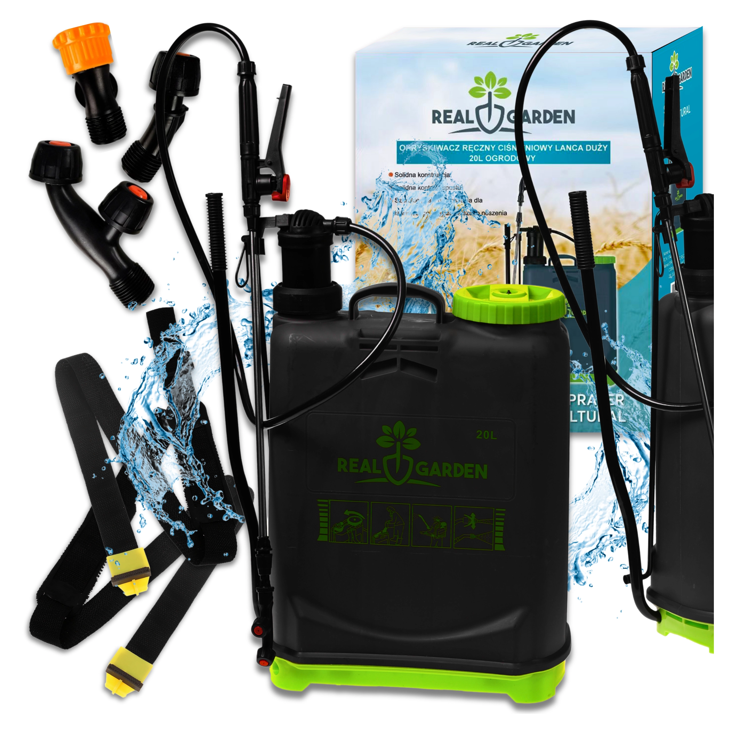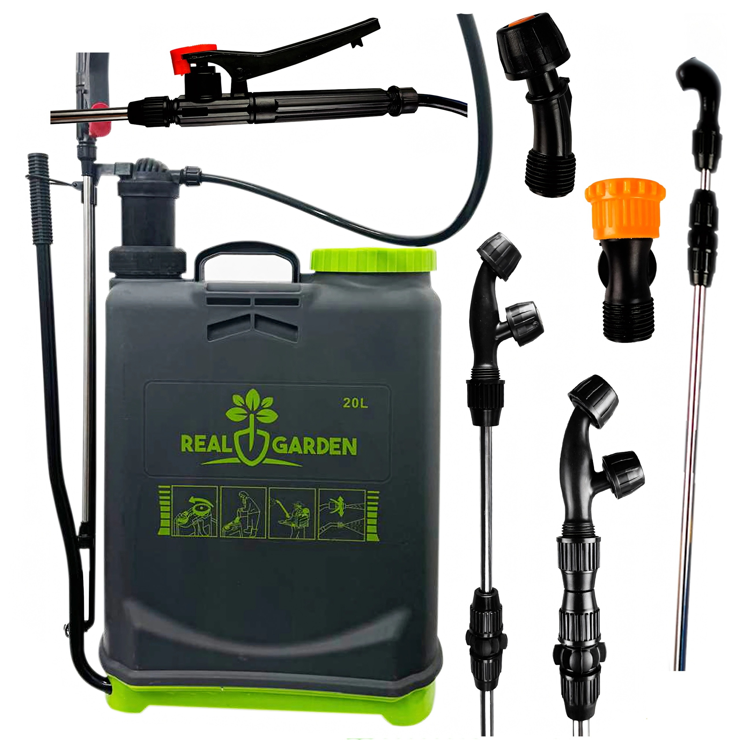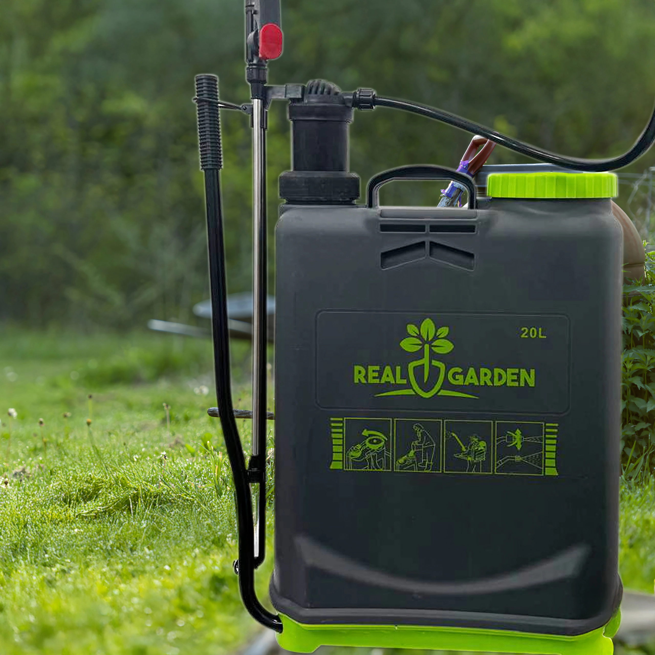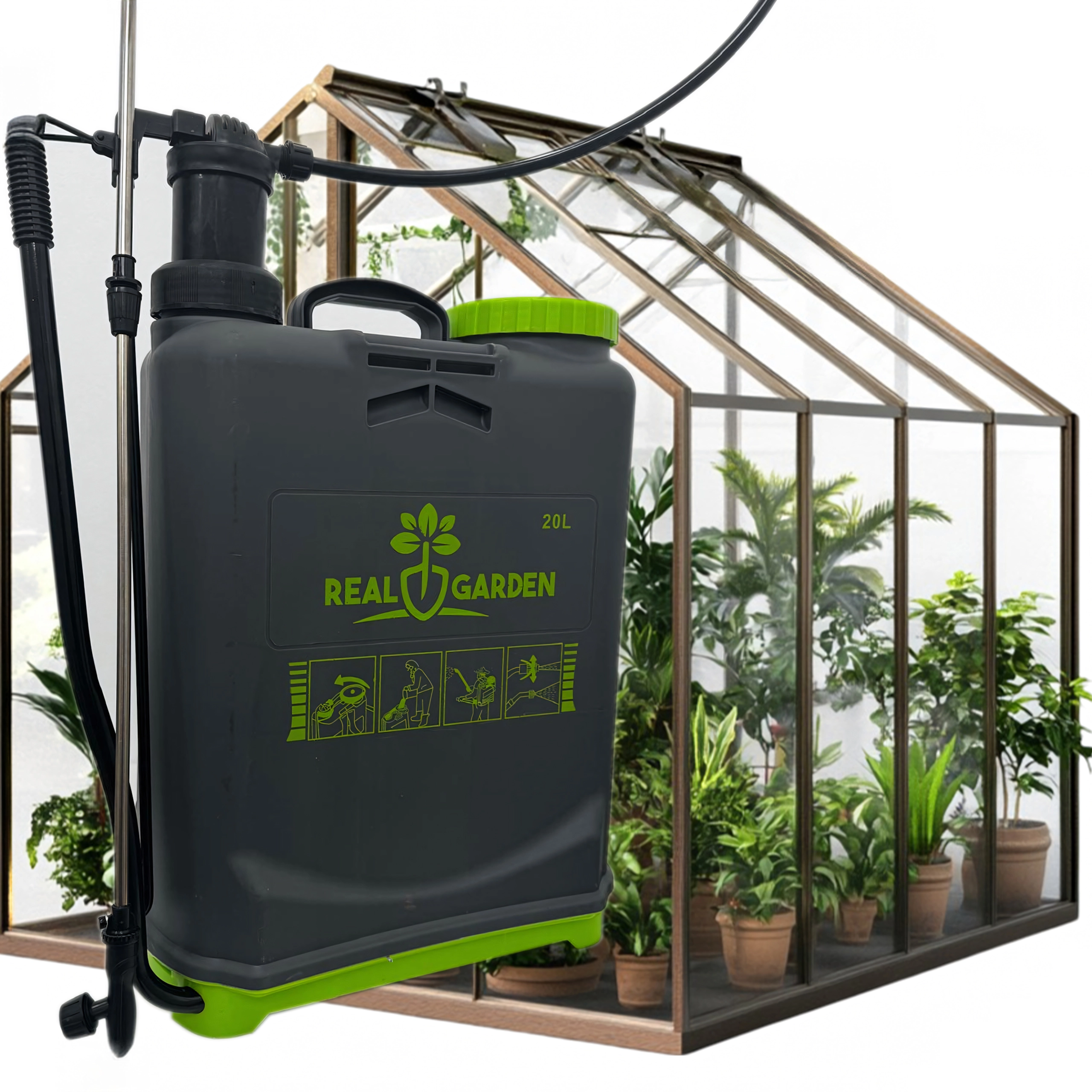 Pakken indeholder flere udskiftelige dyser til forskellige sprøjtemønstre – fra fin tåge til sammenhængende stråle. Behagelige stropper fordeler vægten på ryggen, og den stabile bund giver tryghed ved afsætning. Ideel til drivhuse, bede, frugtplantager og græsplæner.